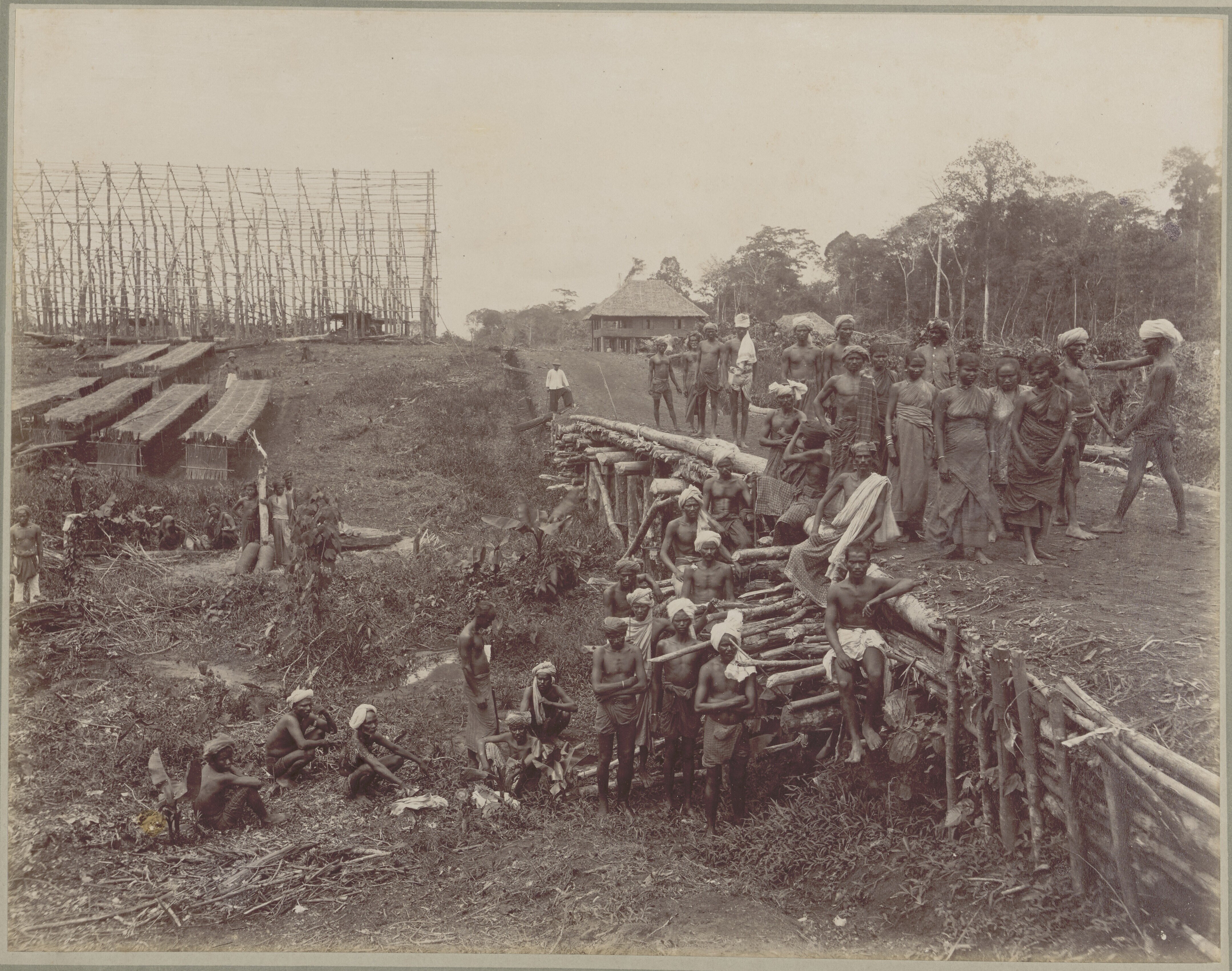 'Groep van Klingaleezen, met assistentenhuis en bibi...