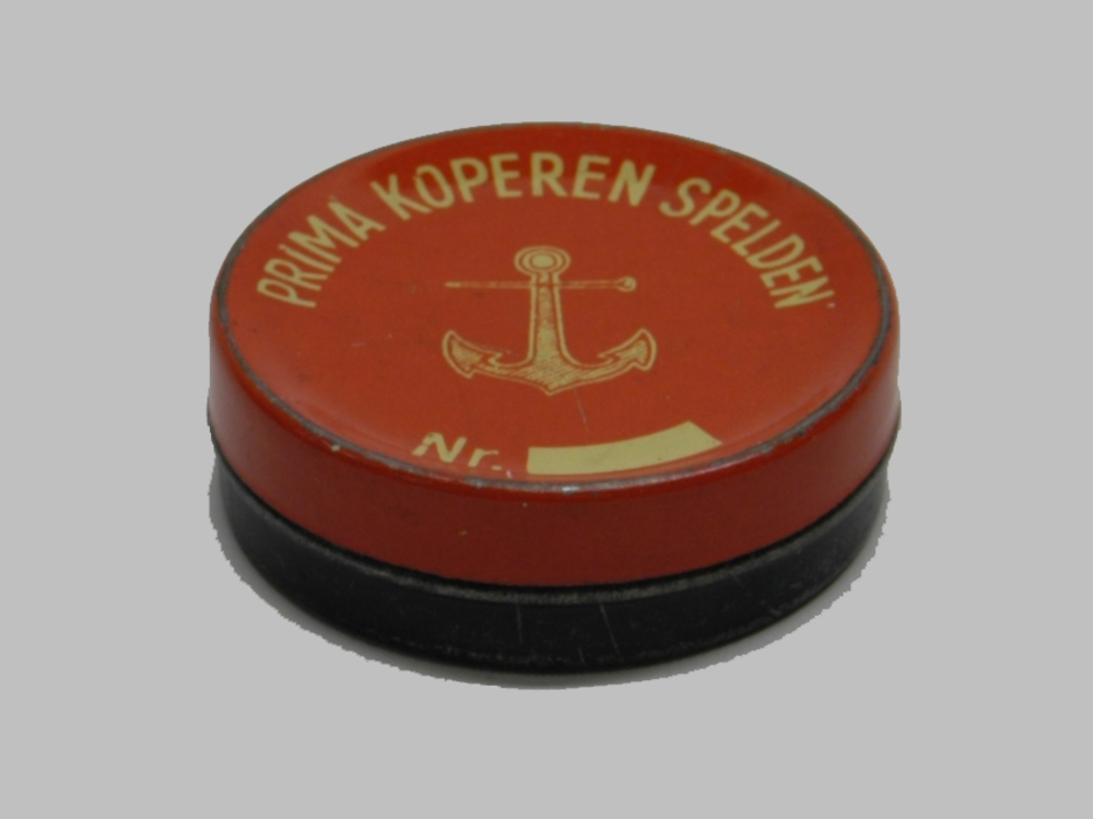 Koperen speldendoos van het merk Anker