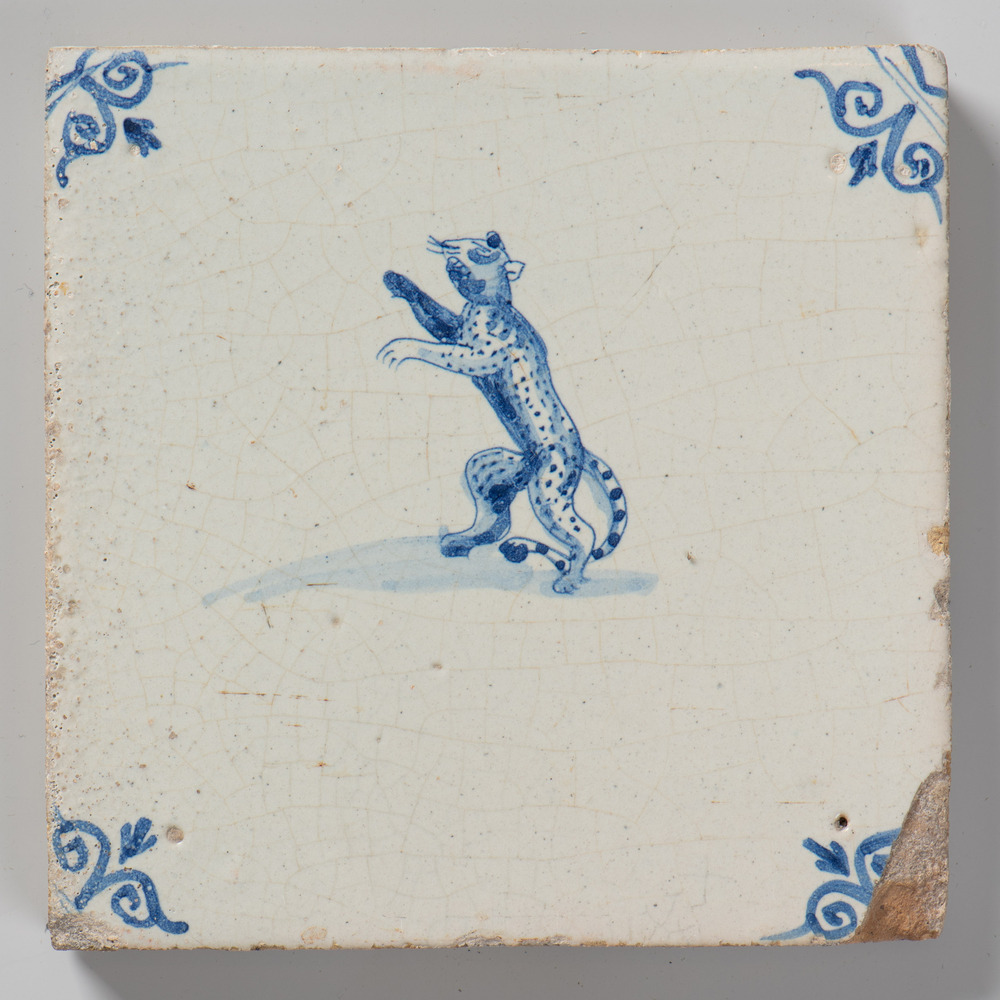 tegel van keramiek met tinglazuur, voorstellende: pa...