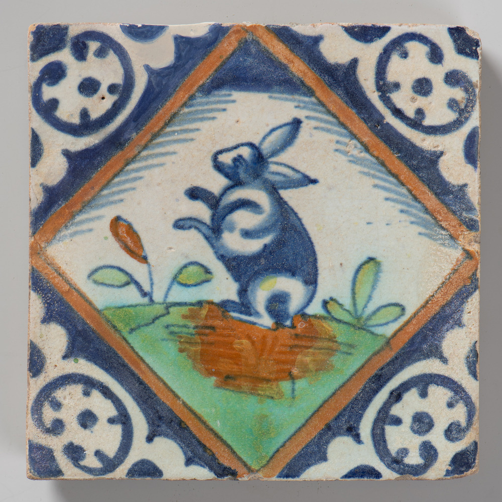 tegel van keramiek met tinglazuur, voorstellende: ha...
