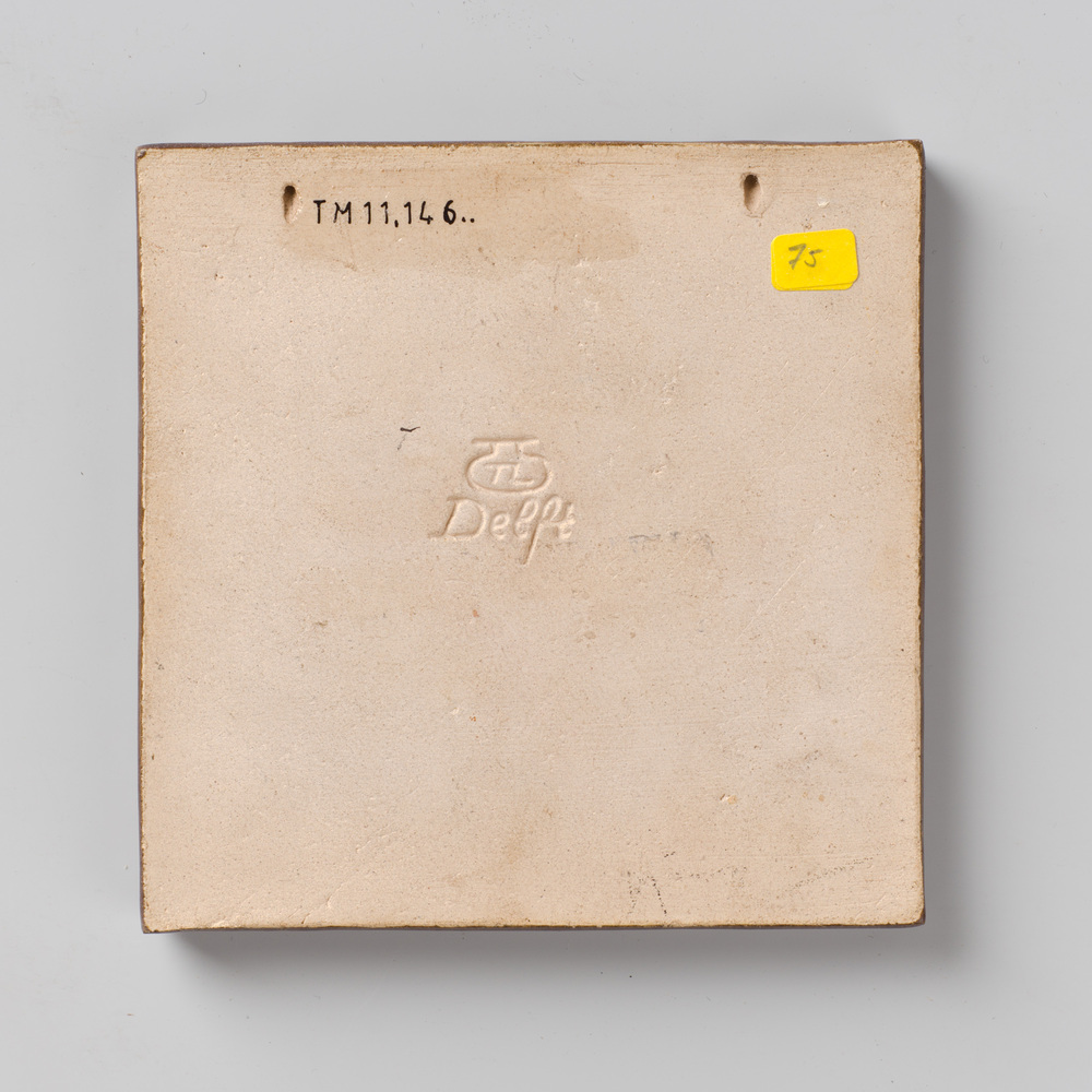 tegel van aardewerk met tinglazuur, voorstellende: p...
