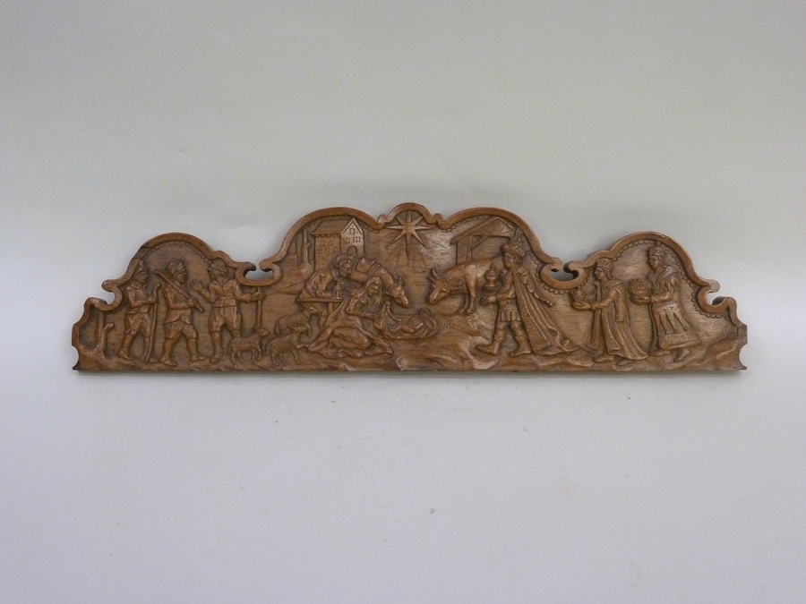 Basreliëf met geboorte van Christus, herder, drie ko...