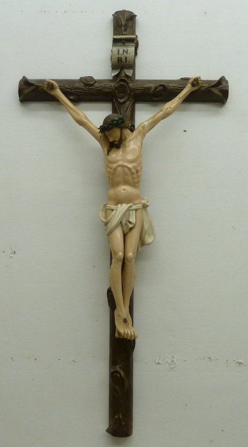 Staand kruis met corpus, terzijde de kruisbalk, pass...