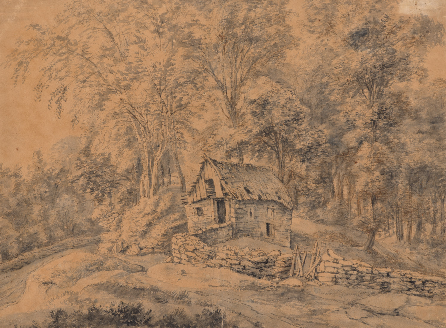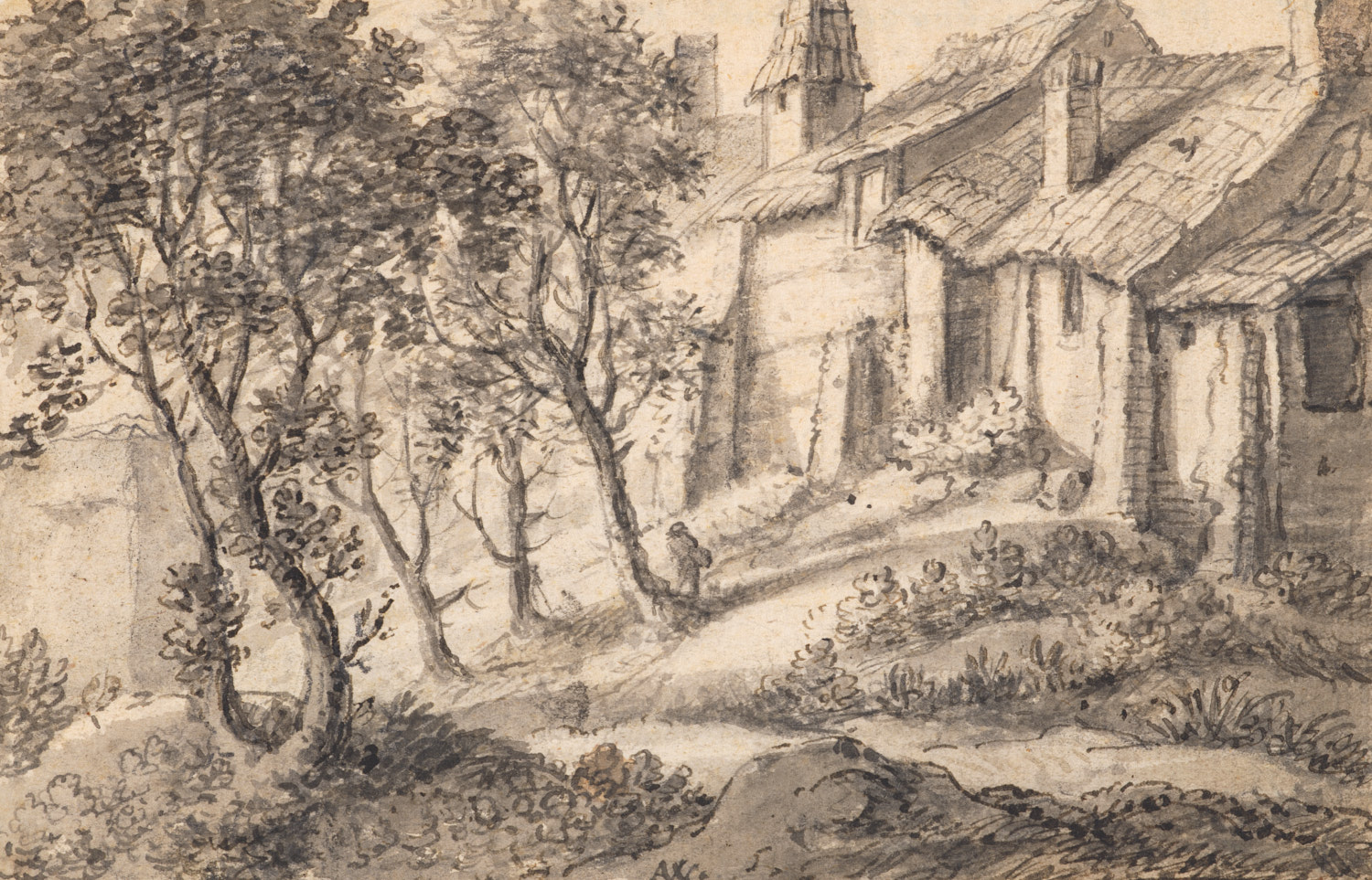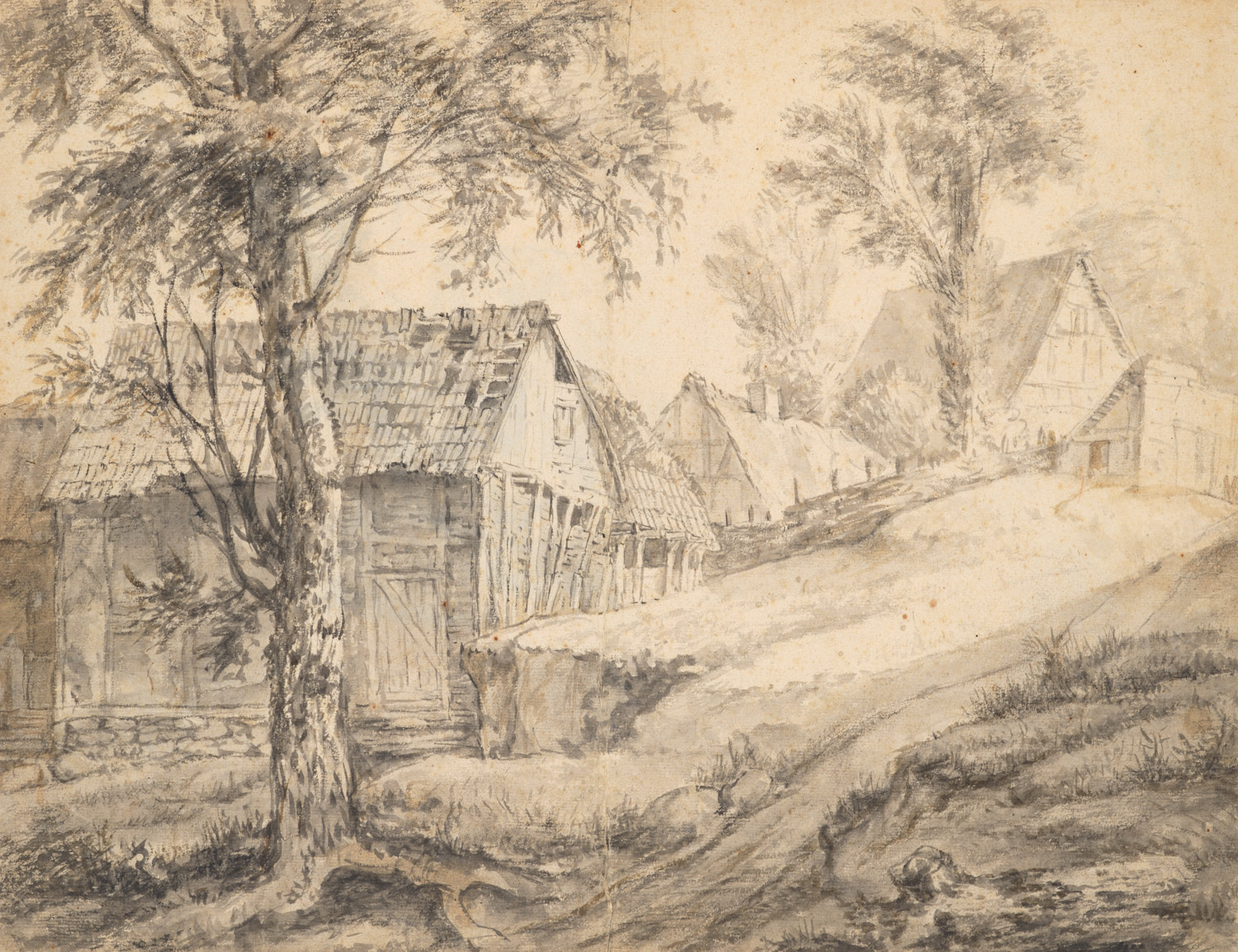 Boerderij in de buurt van Dantzig (recto)(?) Boomstu...