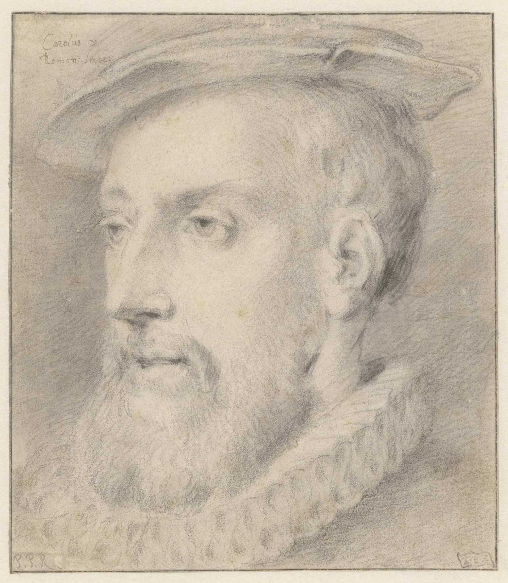 Portret van keizer Karel V. naar P.P. Rubens. Boomst...