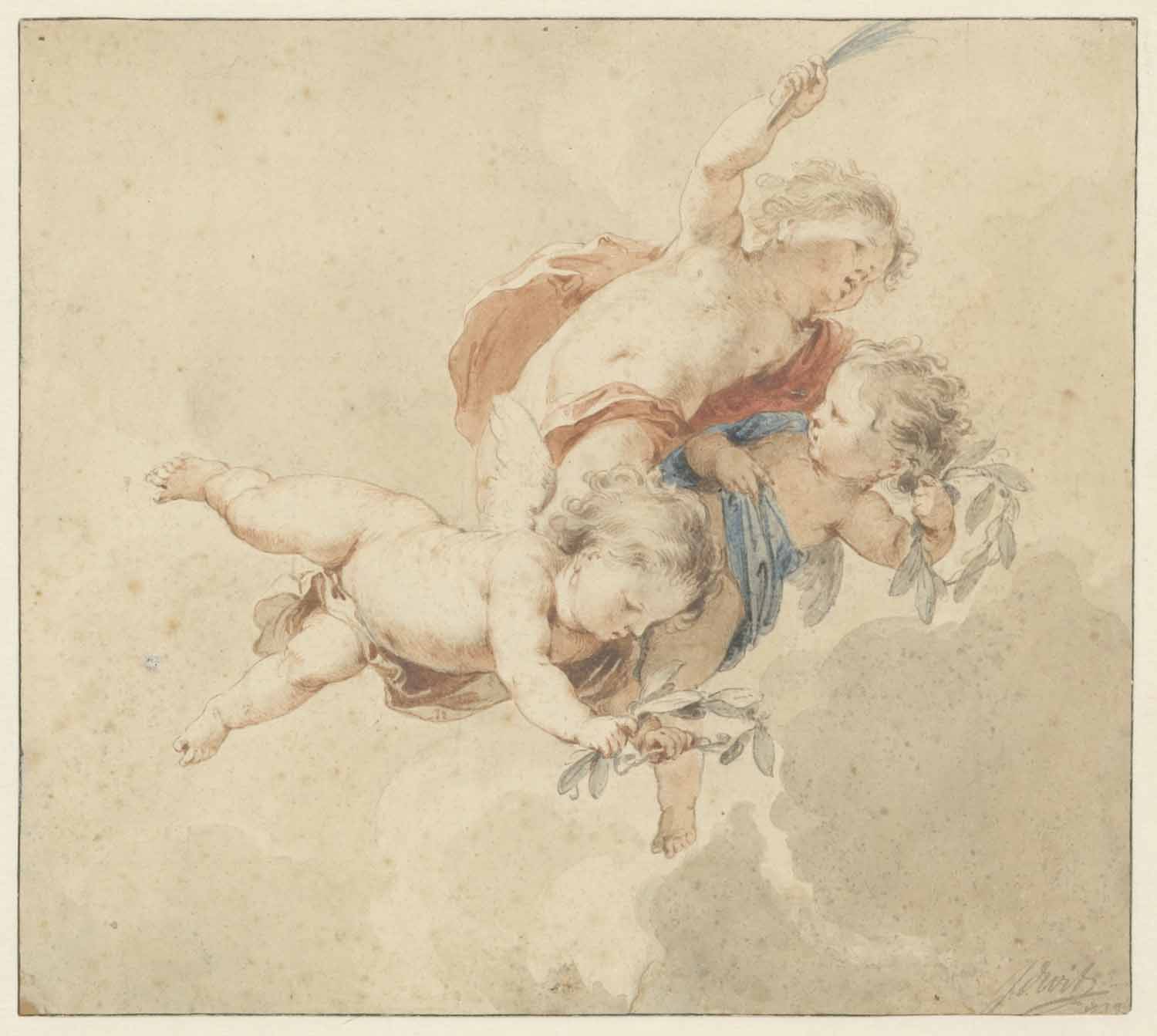 Drie amoretten met lauwerkransen