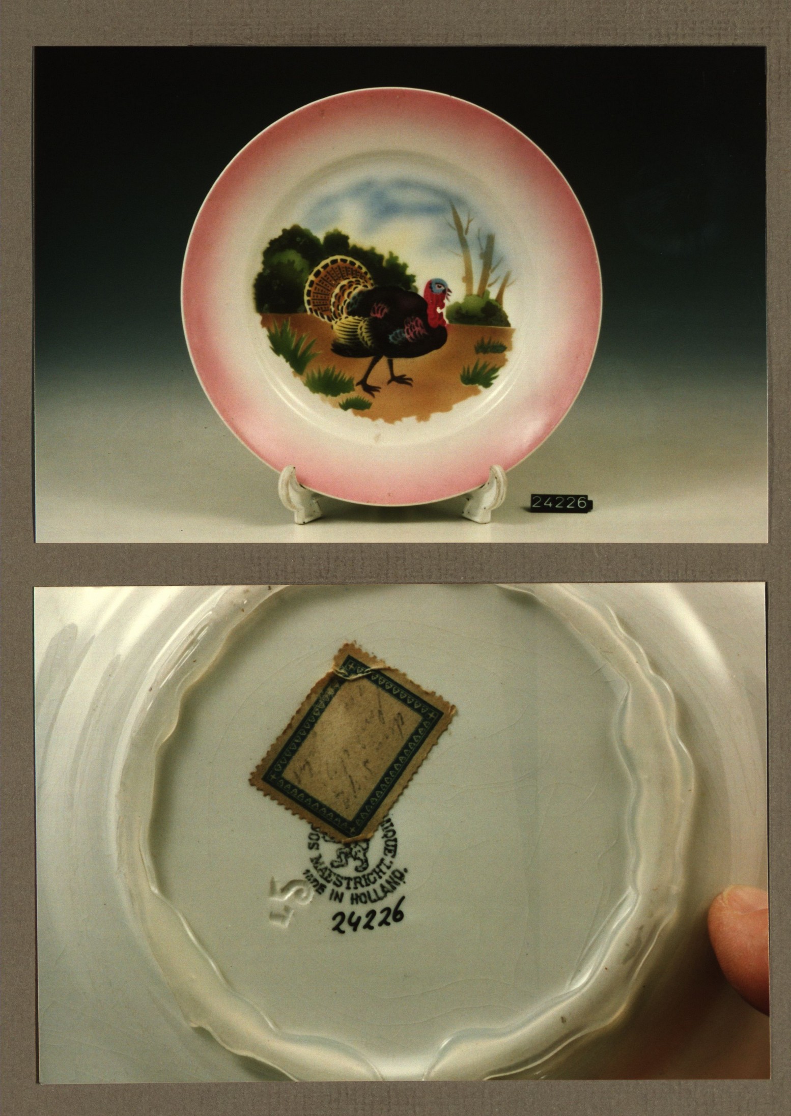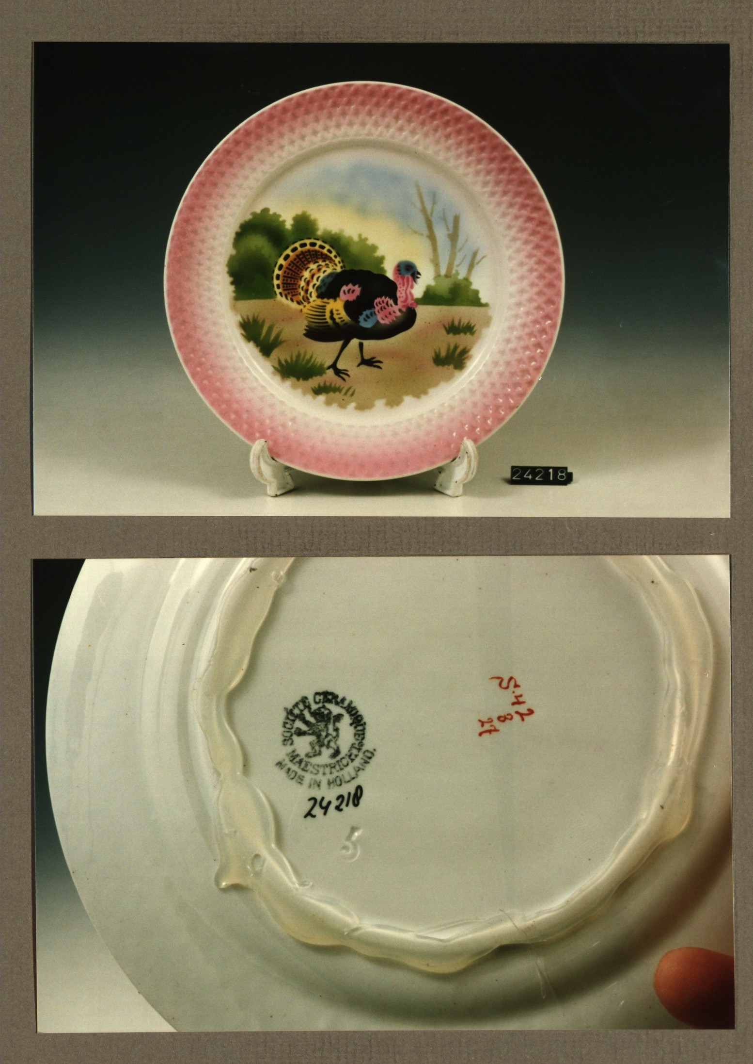 Plat bord, model Belgisch met decor 42 Kalkoen