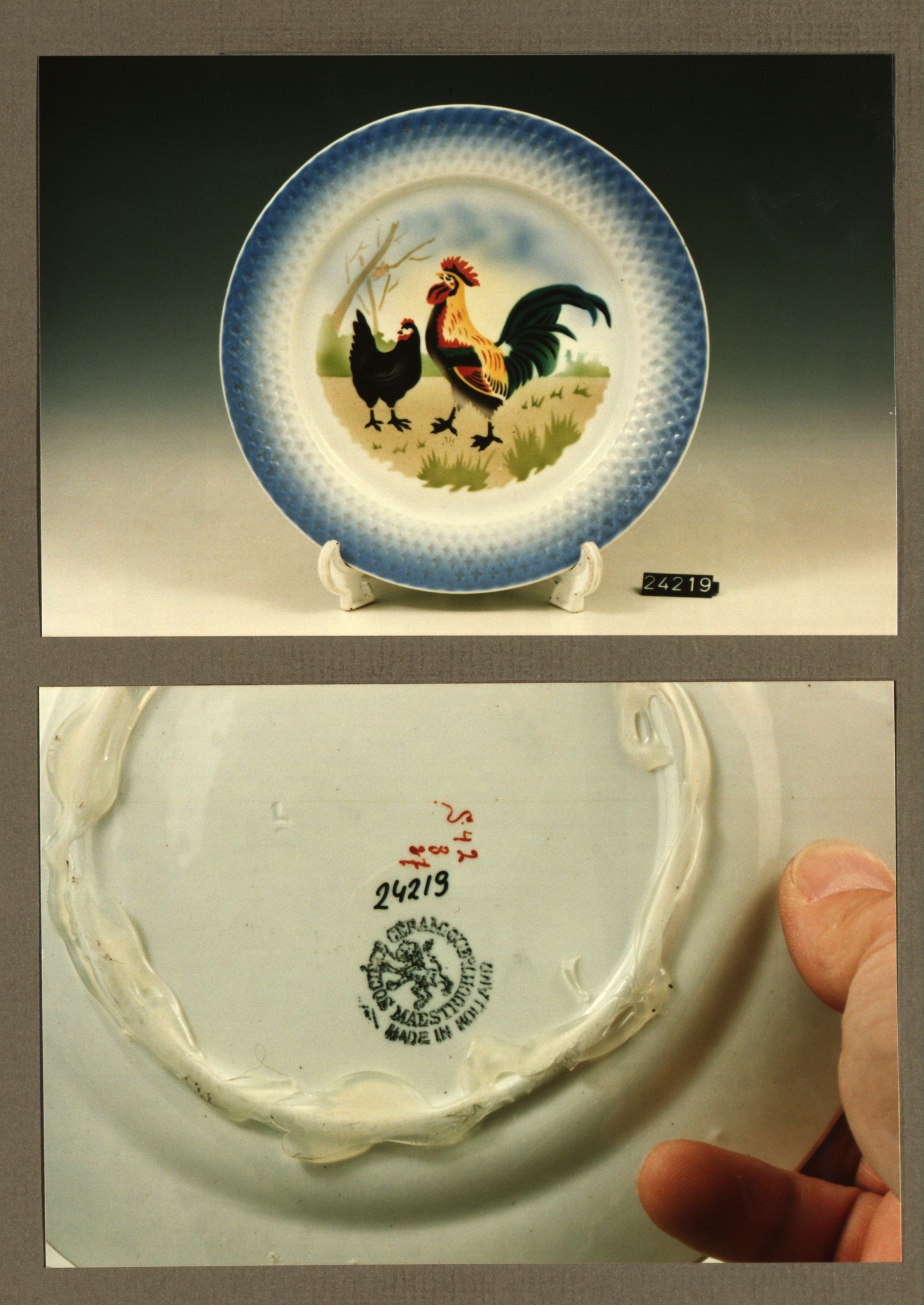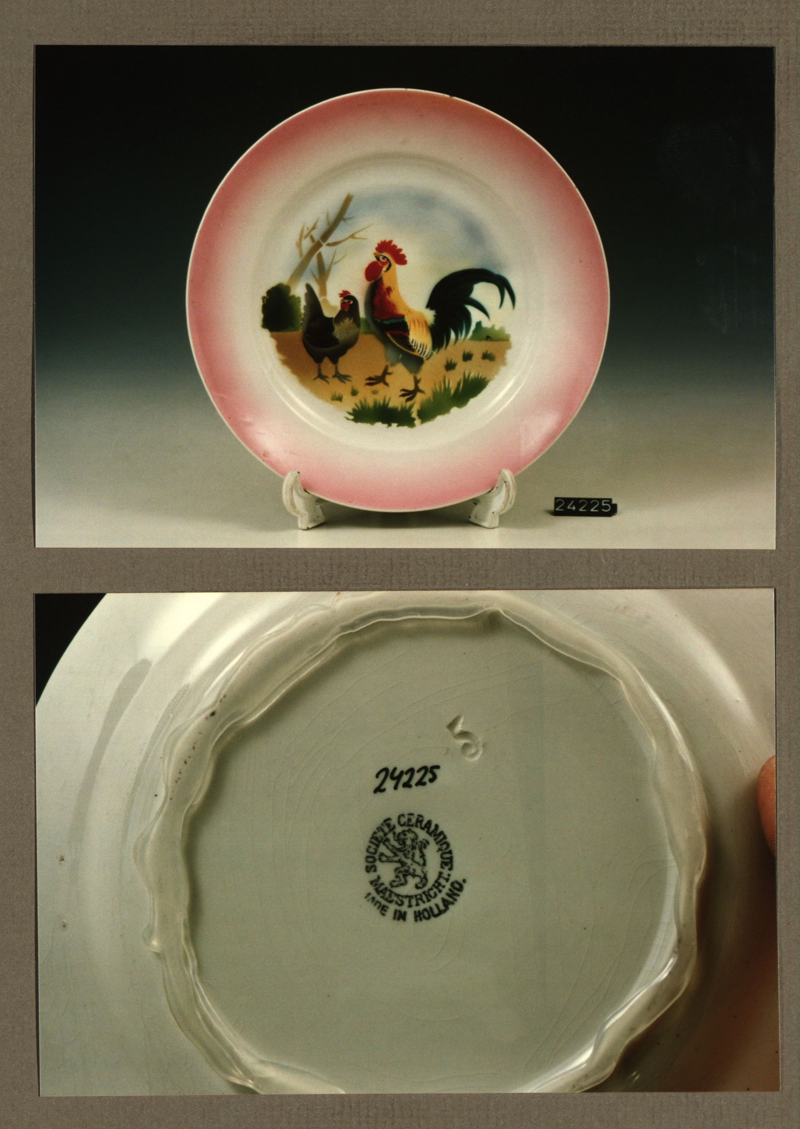Plat bord, model Sterrand met decor 42 Haan+kip