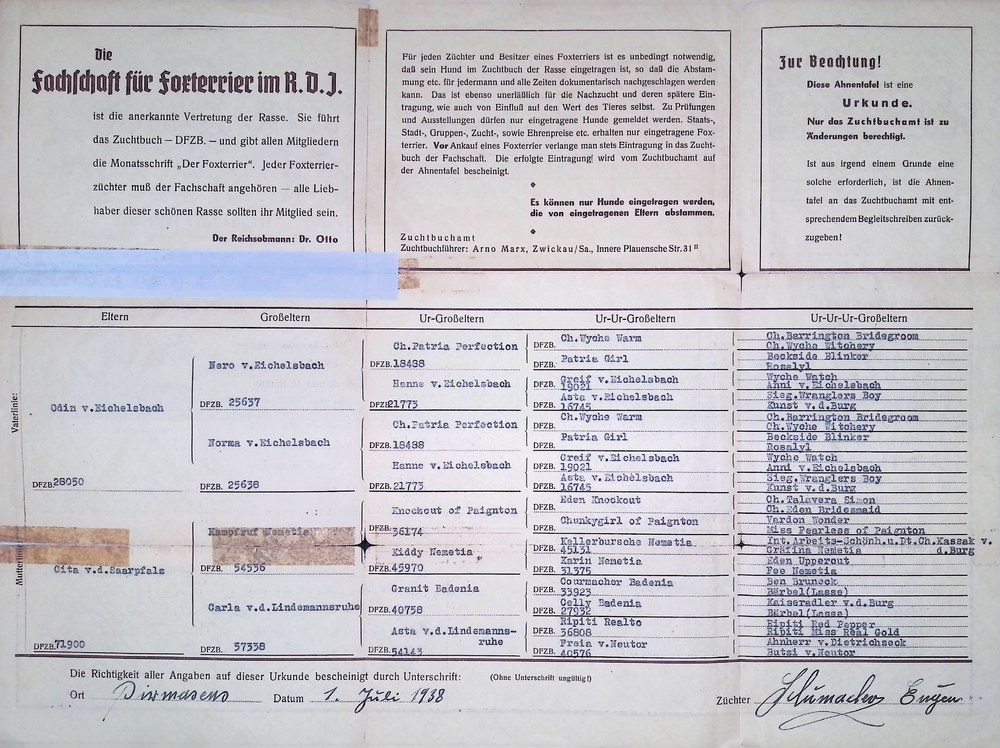 Ahnentafel für den Foxterrier van de Fachschaft für ...