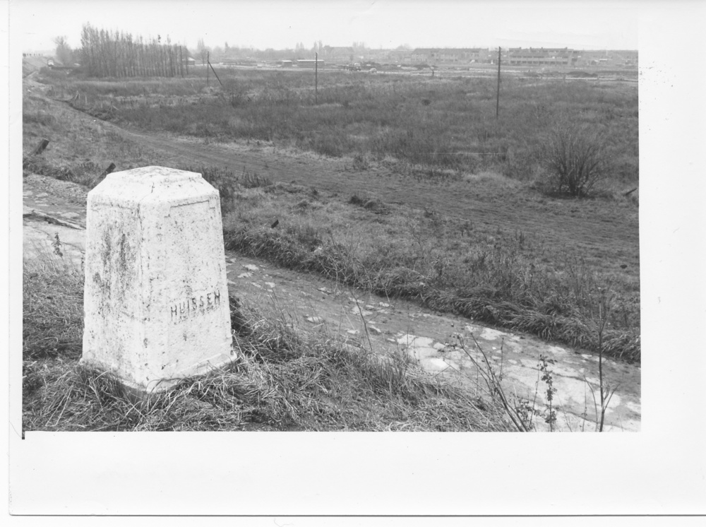 Grenspaal halverwege de Huissense dijk boerderij de ...