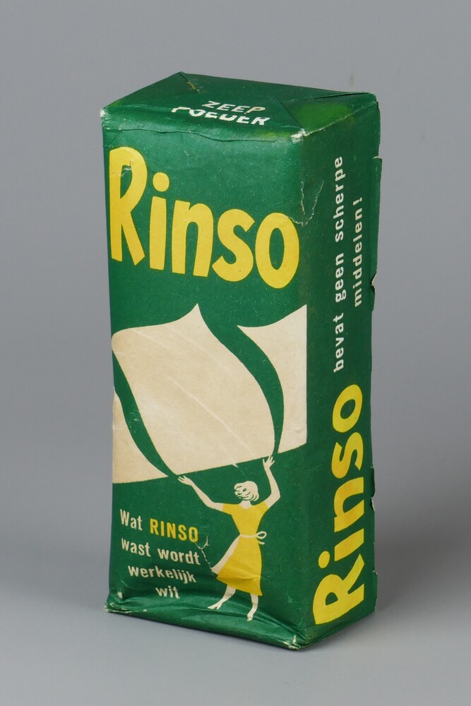 waspoeder, merk Rinso, in papieren verpakking met gr...