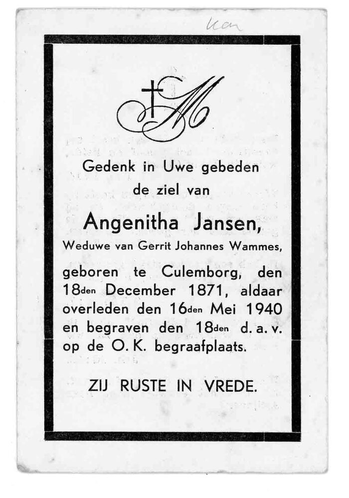 bidprent voor Angenitha Jansen. Geboren 18-12-1871 t...