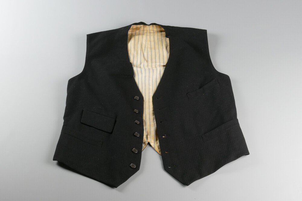 Vest van zwarte wollen stof en gesteepte katoenen vo...