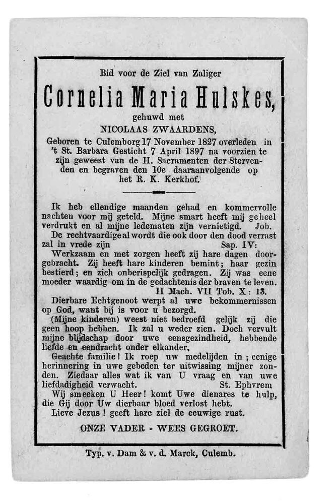 bidprent voor Cornelia Maria Hulskes. Geboren 17-11-...