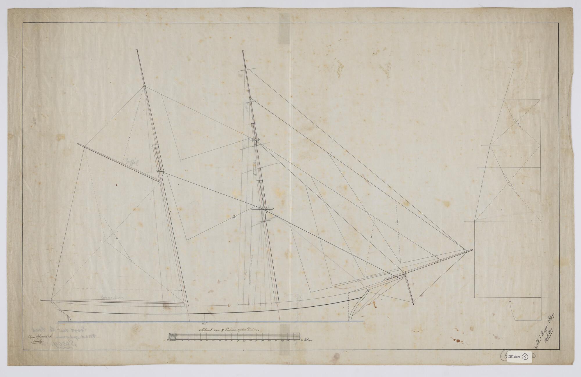 Tuigplan van de klipper schoenerbrik 'Newsboy'