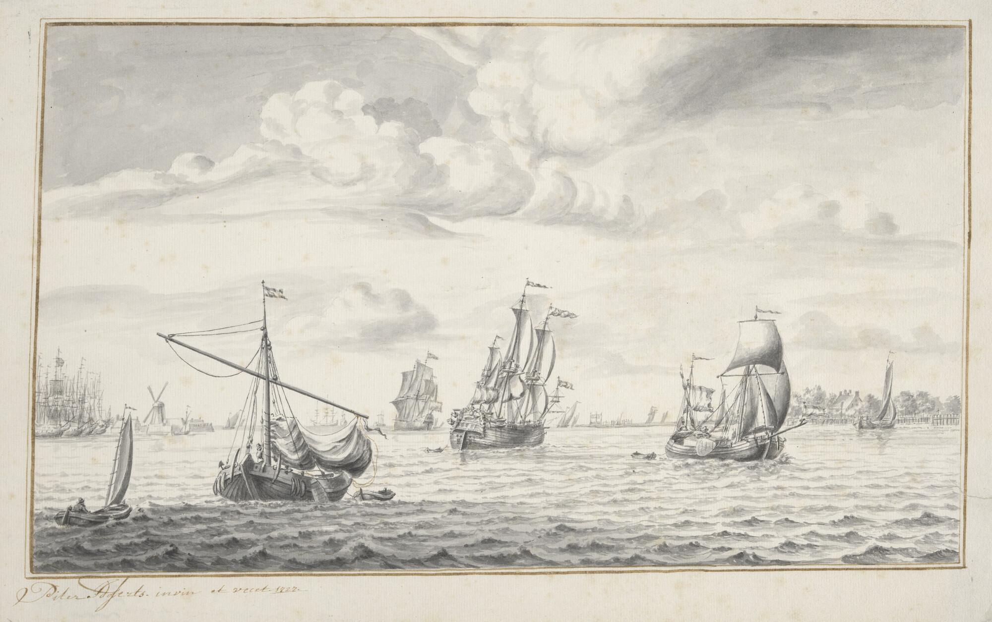 Gezicht op het IJ bij Amsterdam, naar het westen