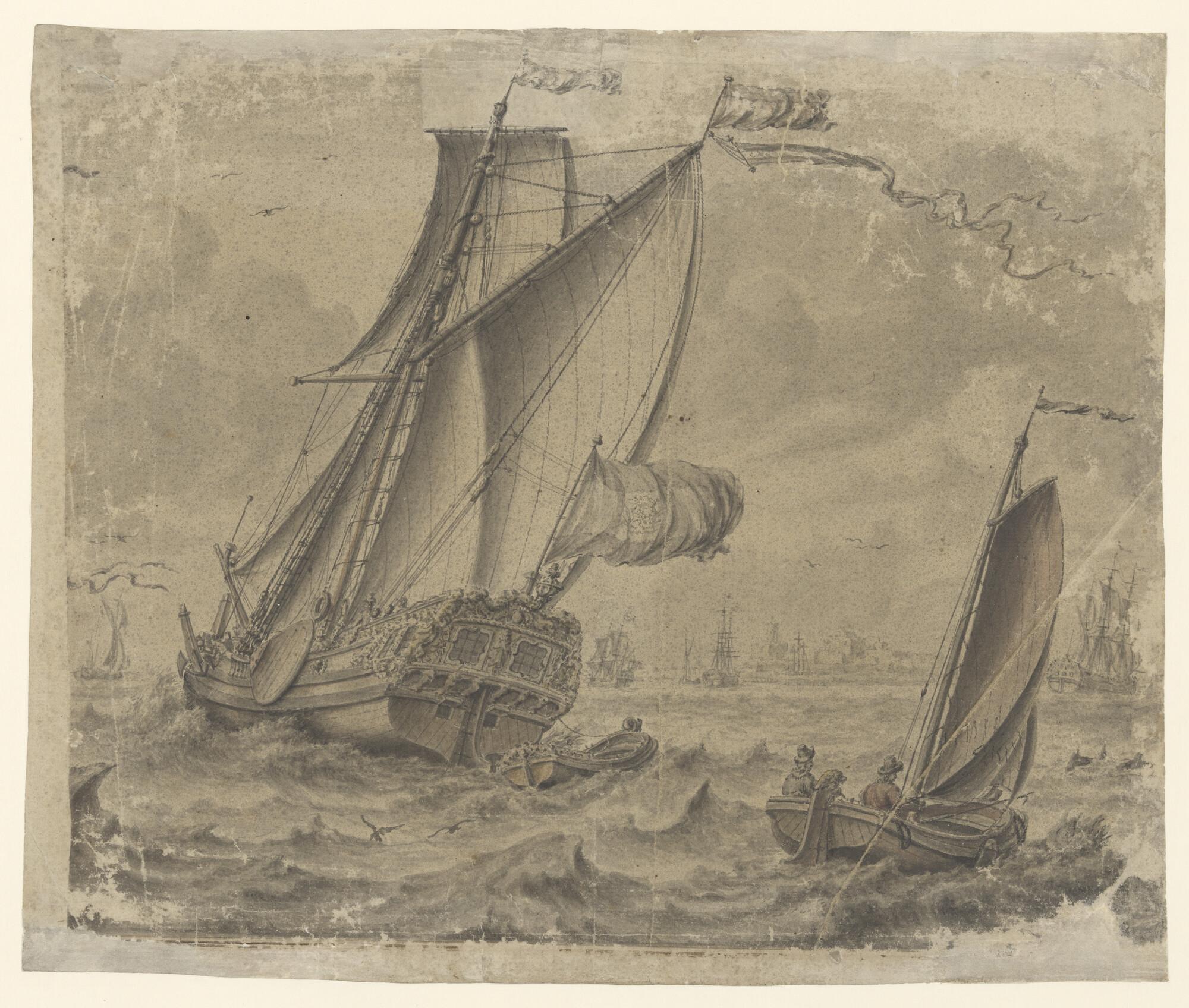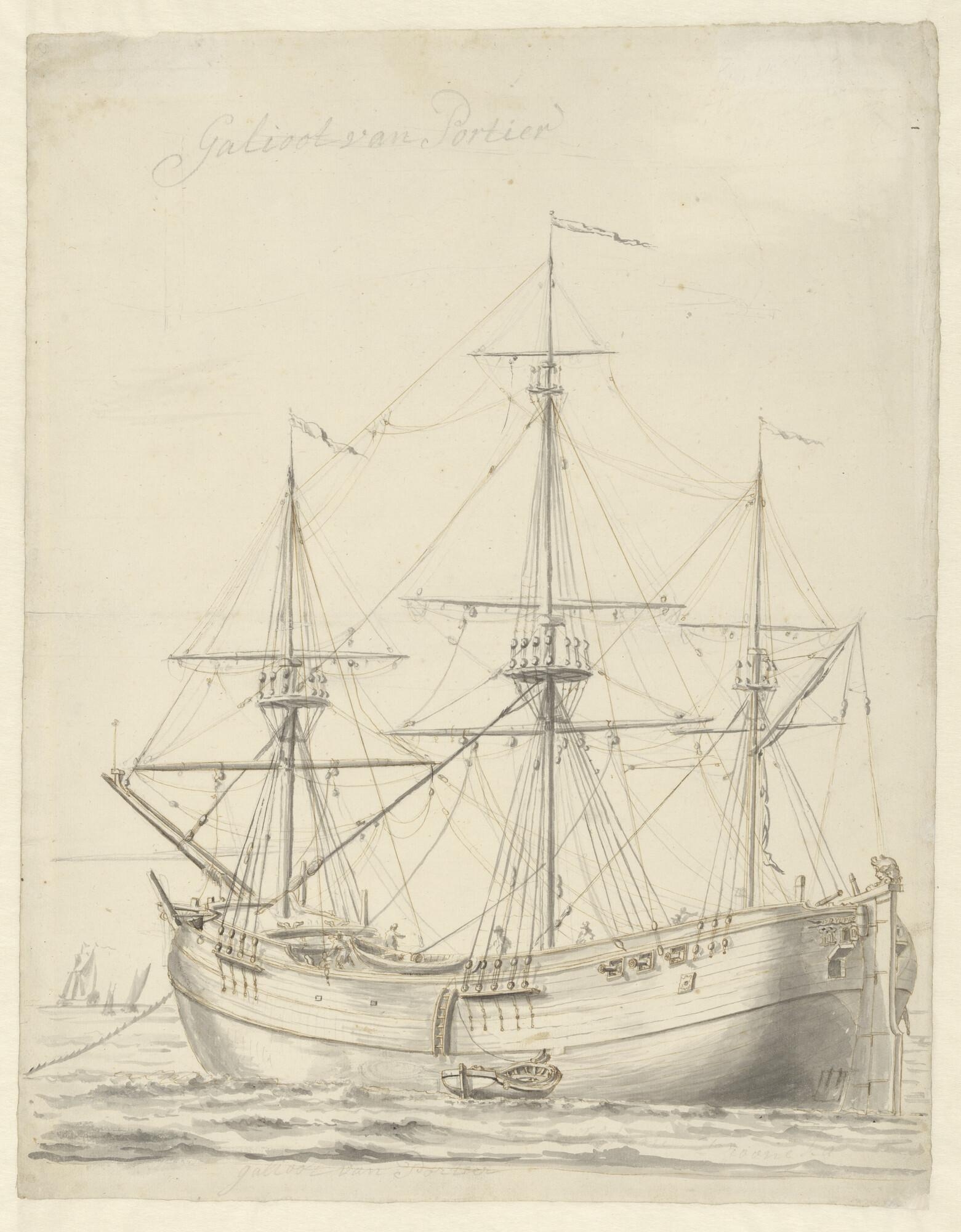 Een voor anker liggende galjoot