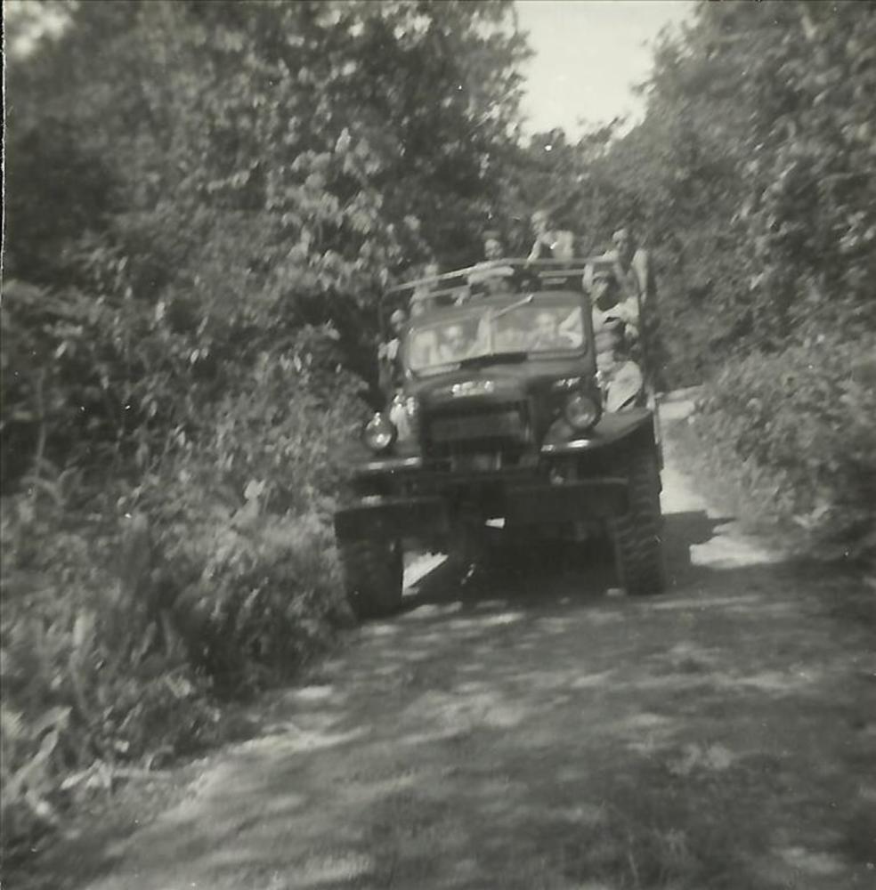Biak, Nieuw-Guinea; militairen in vrachtwagen