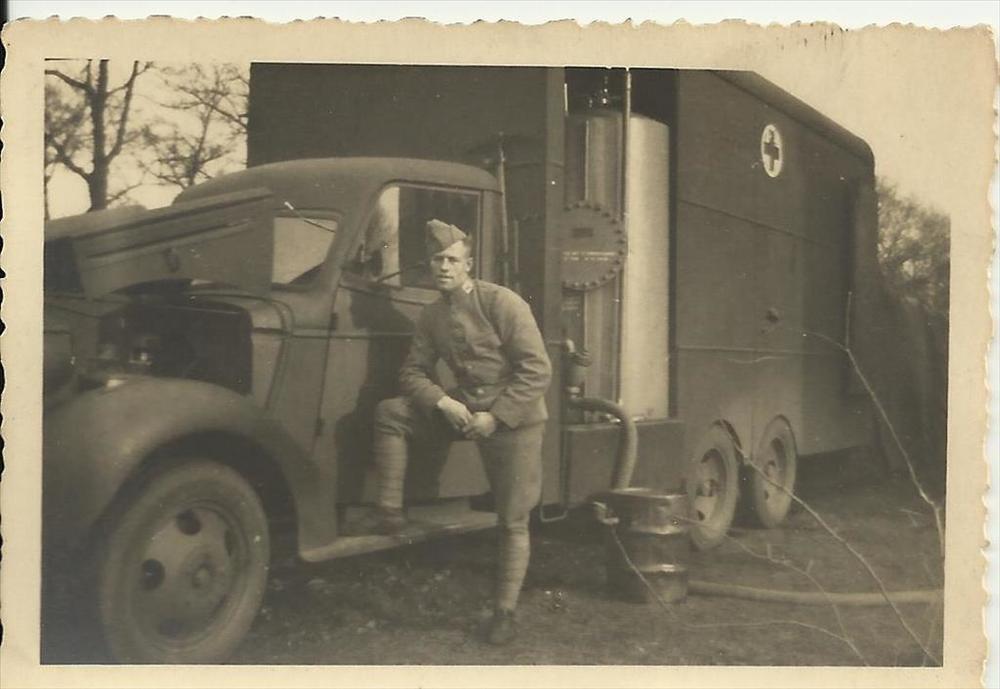 soldaat voor rode kruis wagen, machinekamer zichtbaa...