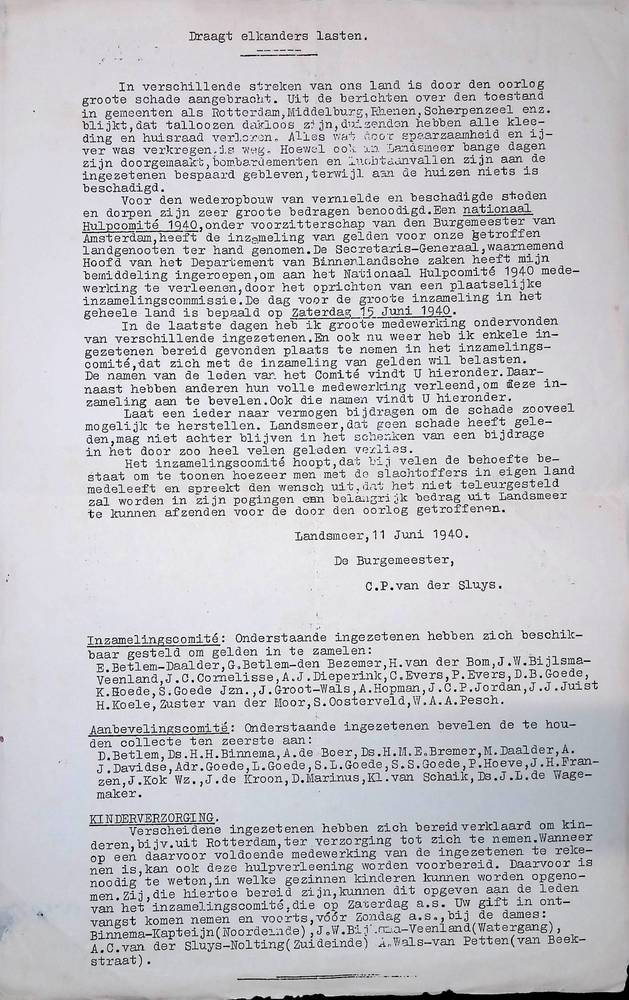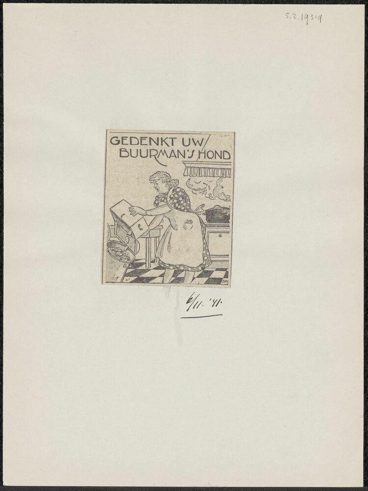 Vel met opgeplakte advertentie: "Gedenkt uw buurman'...