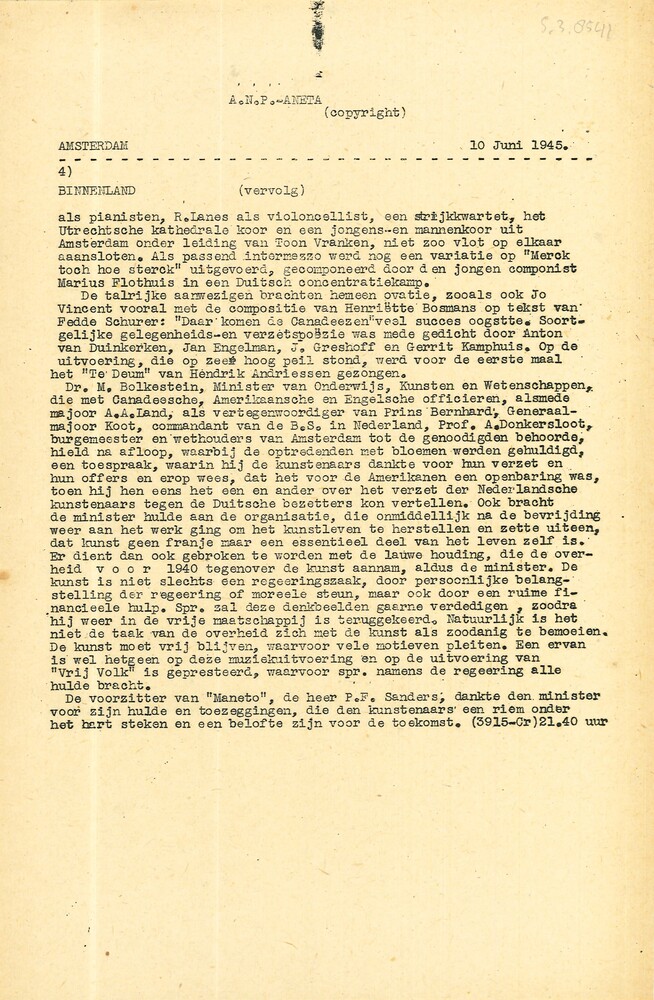 Vel: Algemeen Nederlandsch Persbureau, mededelingen,...