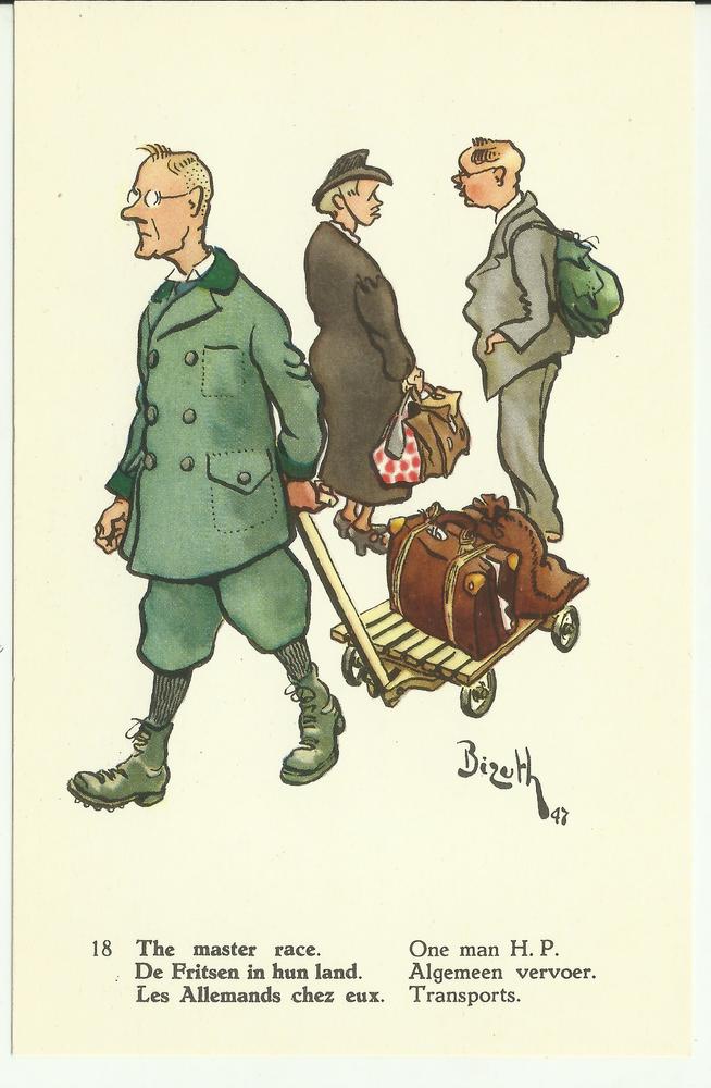 Foto mannen met kar op hongertocht. Tekst achterop: ...