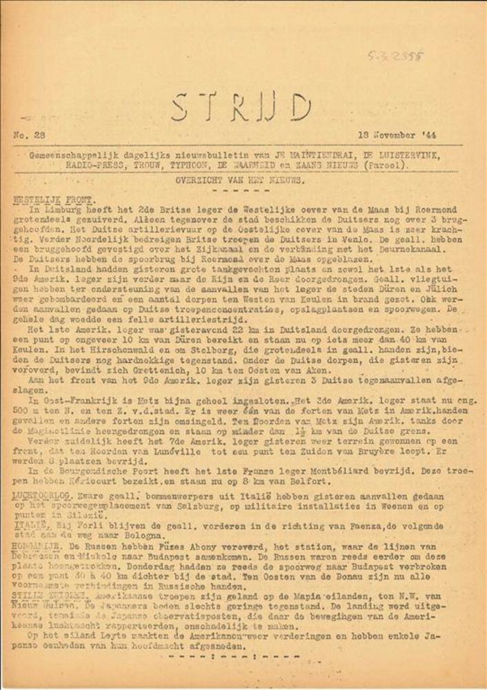 Alarmeringsbericht, 28 augustus 1944, betreffende ui...