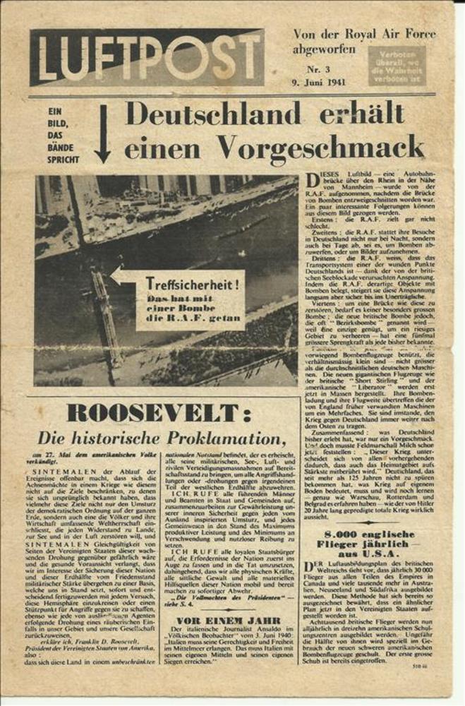 Luftpost von der Royal Air Force abgeworfen 9 juni 1941