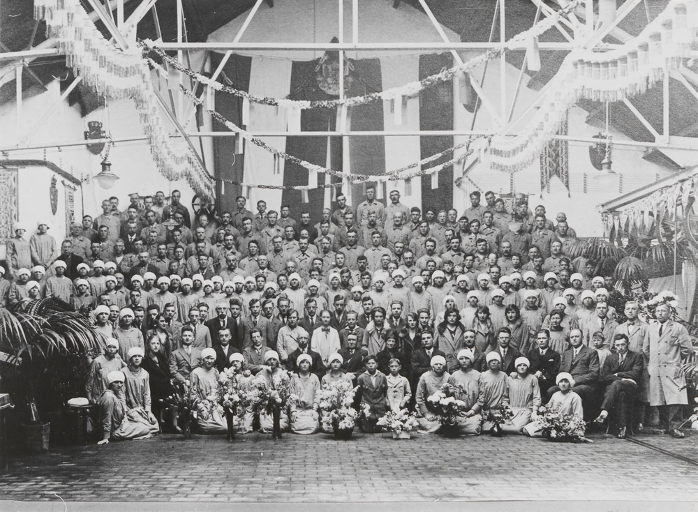 Groepsfoto van het personeel van Maatschappij De Bet...