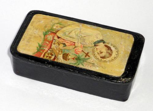 Snuifdoos. Langwerpige bruin gelakte houten snuifta...