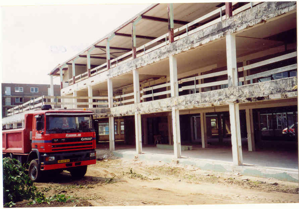 Foto, voorstellende de bouw van de spoorbrug te Cule...