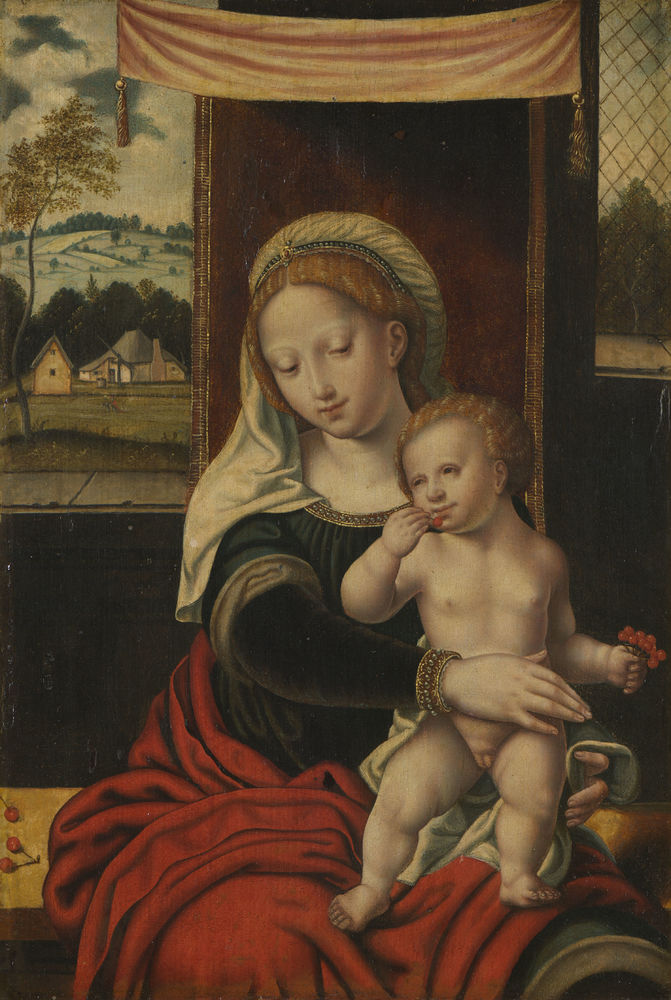Paneelschildering "Madonna met kind" op hout door Zu...