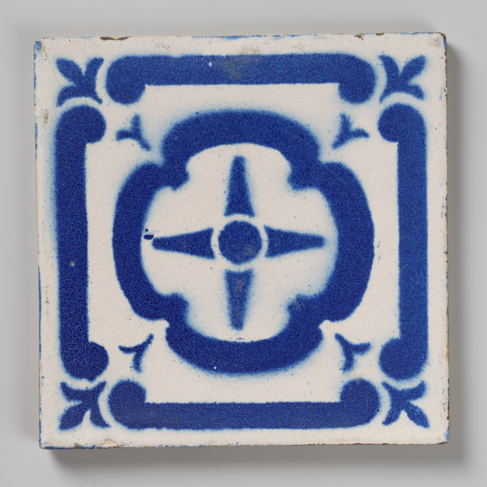 tegel van aardewerk met tinglazuur, voorstellende: o...