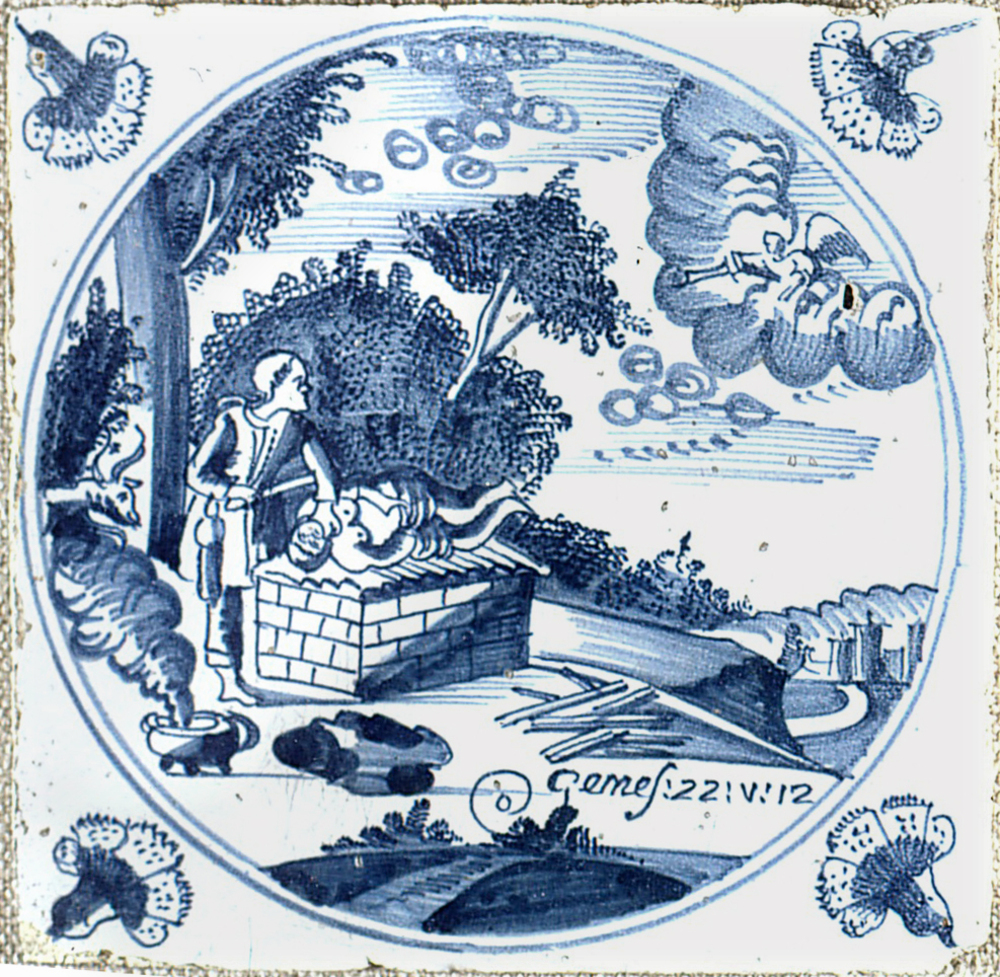 tegel van keramiek met tinglazuur, voorstellende: Ab...