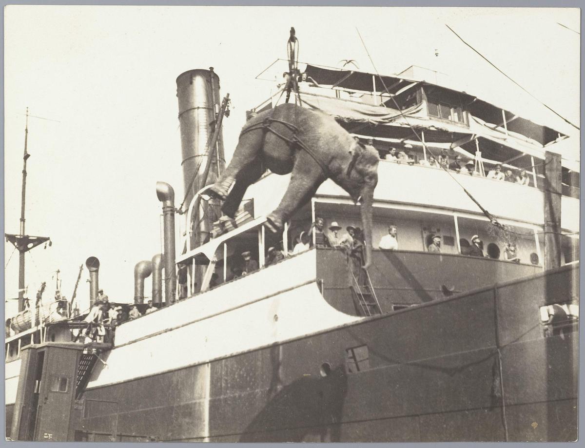 Olifant wordt getransporteerd naar of van de boot