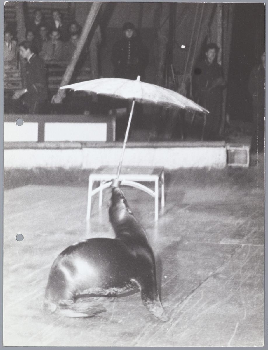 Zeeleeuw met parasol Circus Strassburger