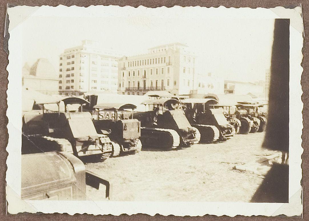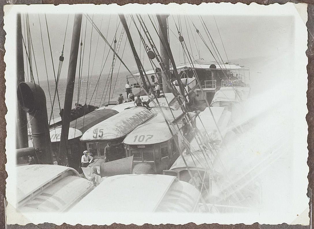 Wagens van Circus Sarrasani op de boot tijdens de re...