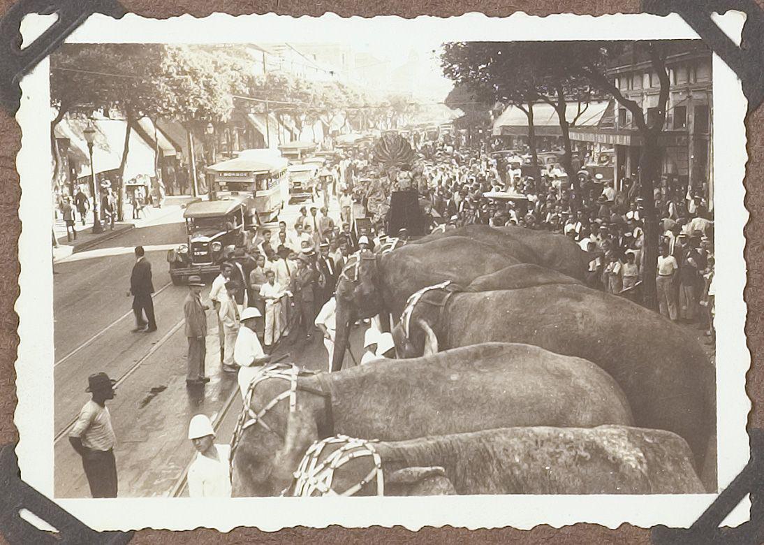Olifanten van het Circus Sarrasani in stad in Zuid-A...