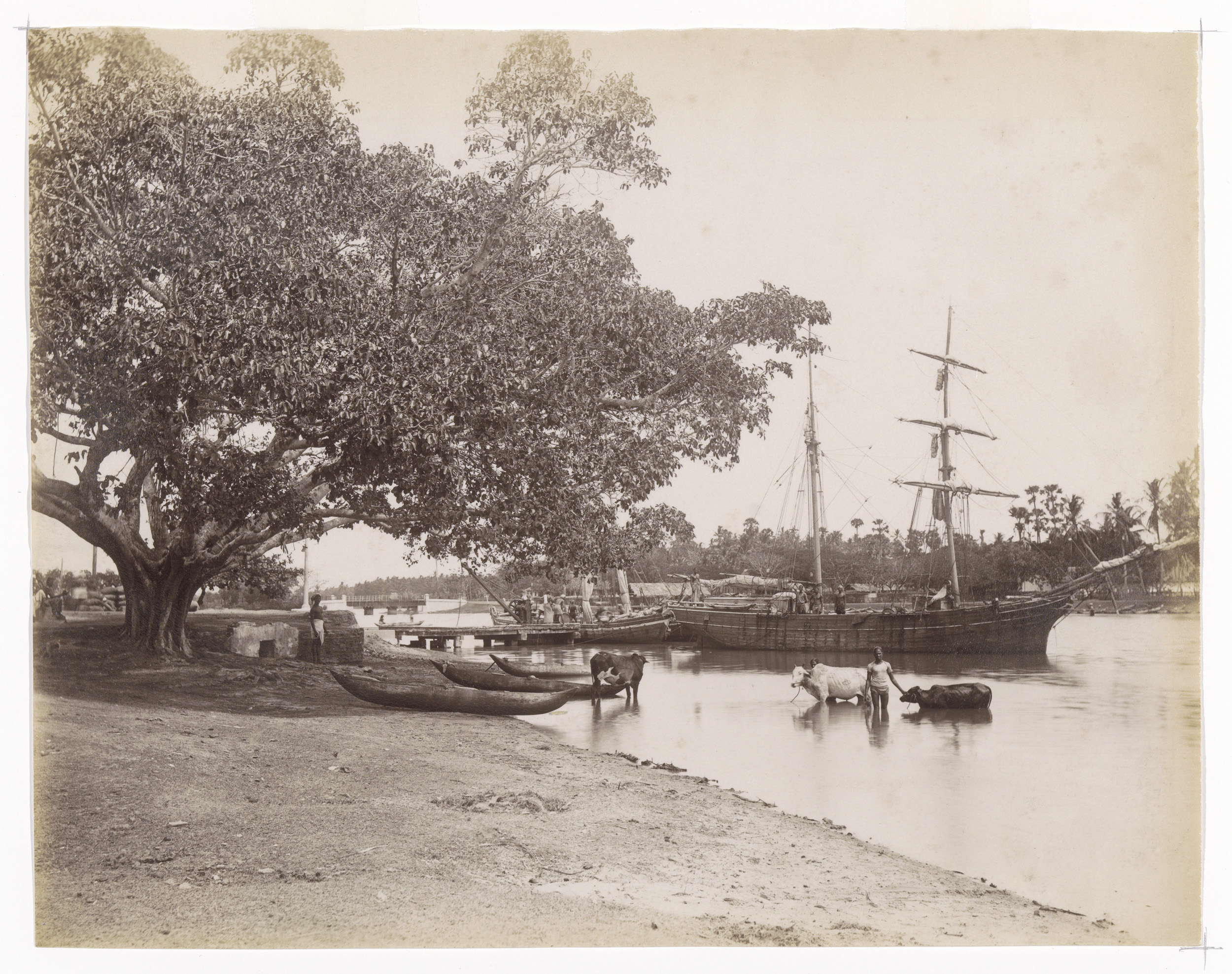 Ships and cows on the banks at Batticaloa, Sri Lanka