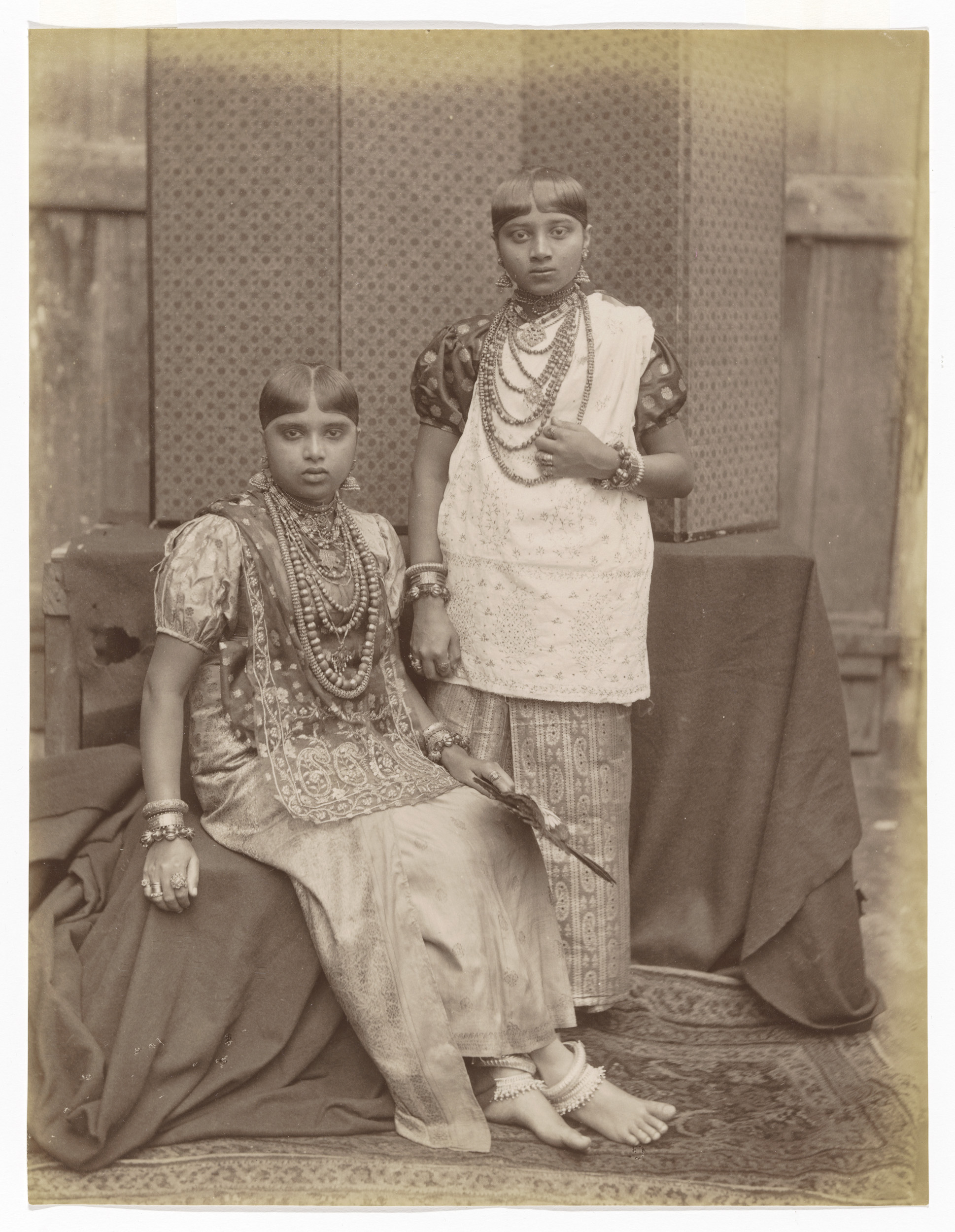 Portrait of two unknown women from Kandy, dressed in...