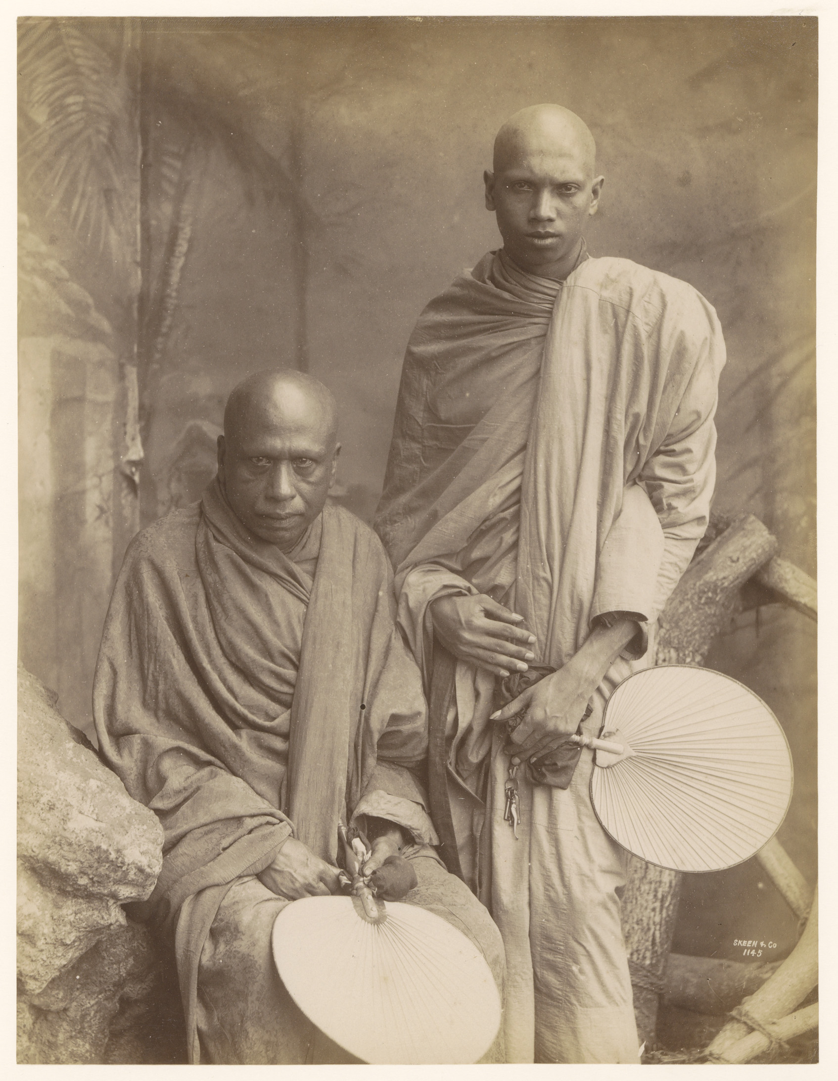 Studio portrait of two unknown Buddhist monks, Sri L...