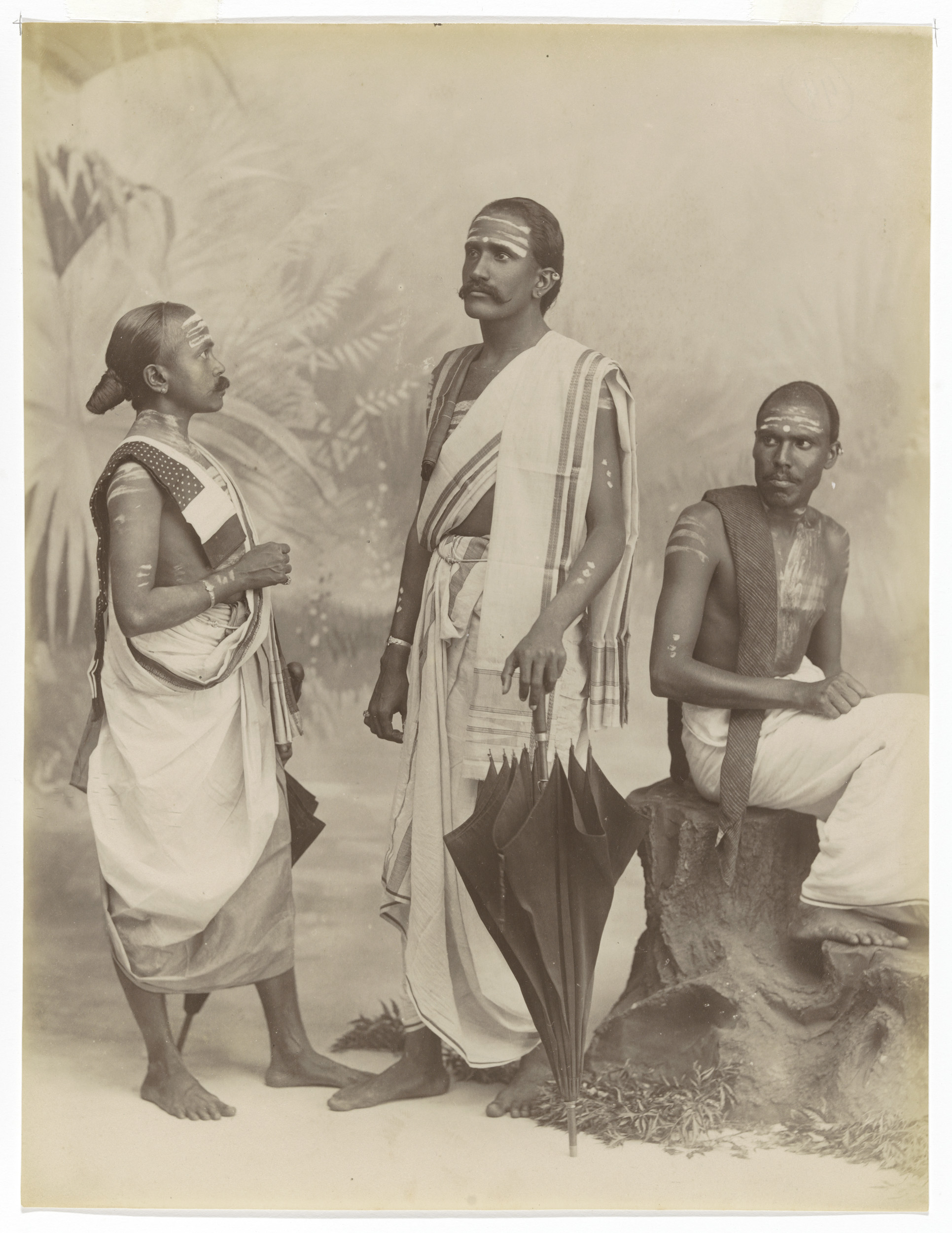 Studio portrait of three unknown Tamil priests, Sri ...