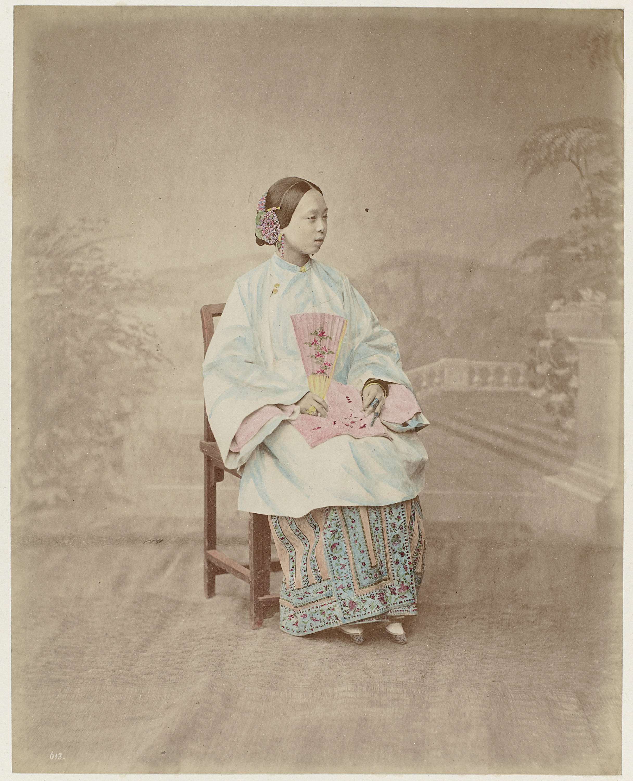 Portret van een zittende jonge Chinese vrouw