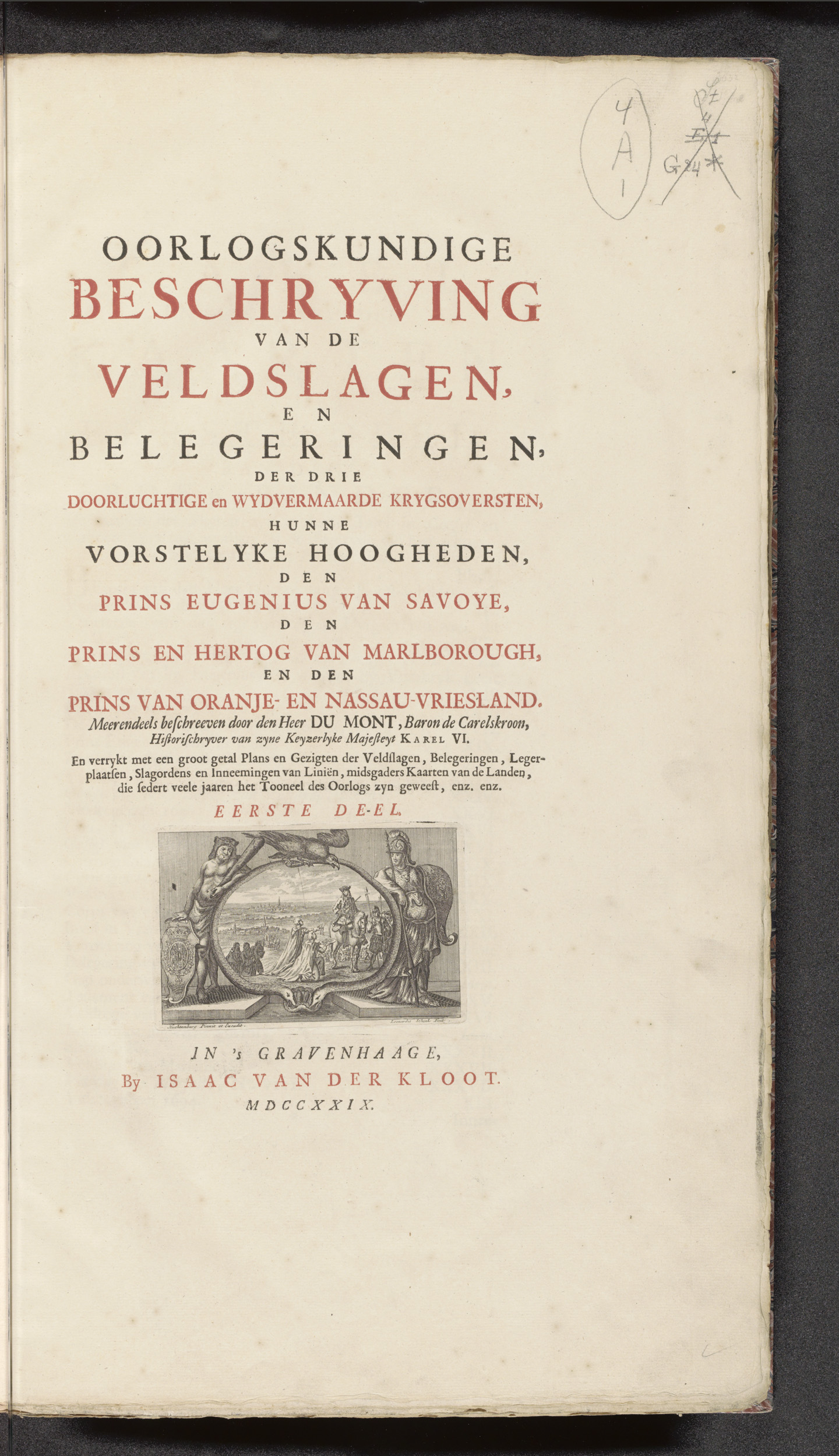 Titelpagina voor: [Jean] du Mont, Oorlogskundige bes...