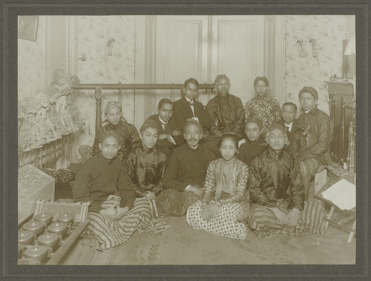 Groepsportret van Javanen, leden van een gamelan-ork...