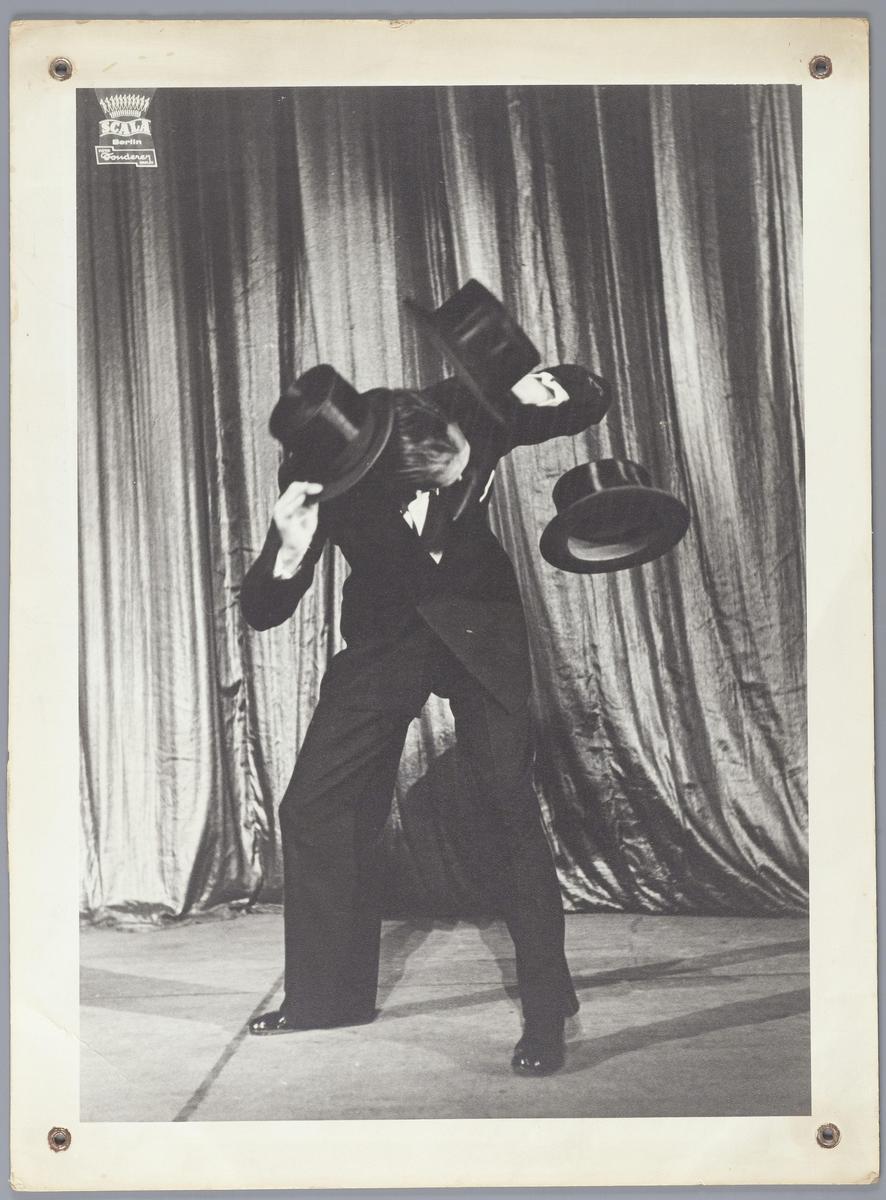 Bela Kremo jongleert met hoge hoeden