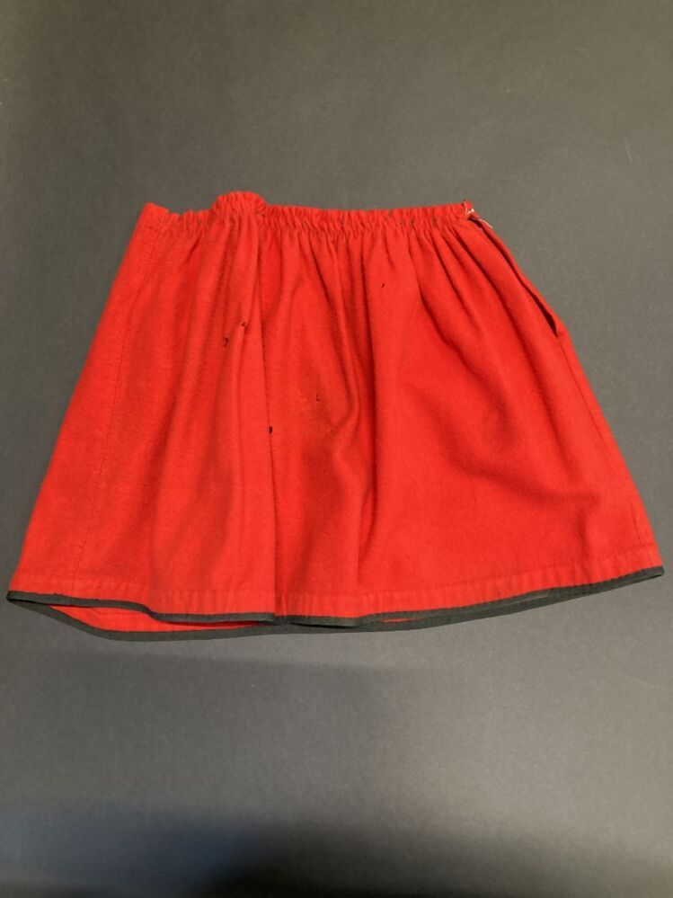 Rok, onderdeel van een bruin geruit wollen kostuum