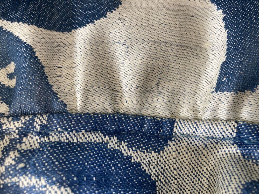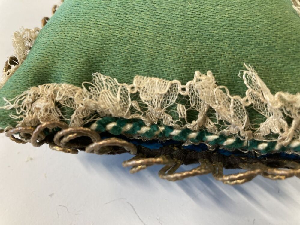 Bakerspeldenkussen, tapisserie met wol en zijde blau...