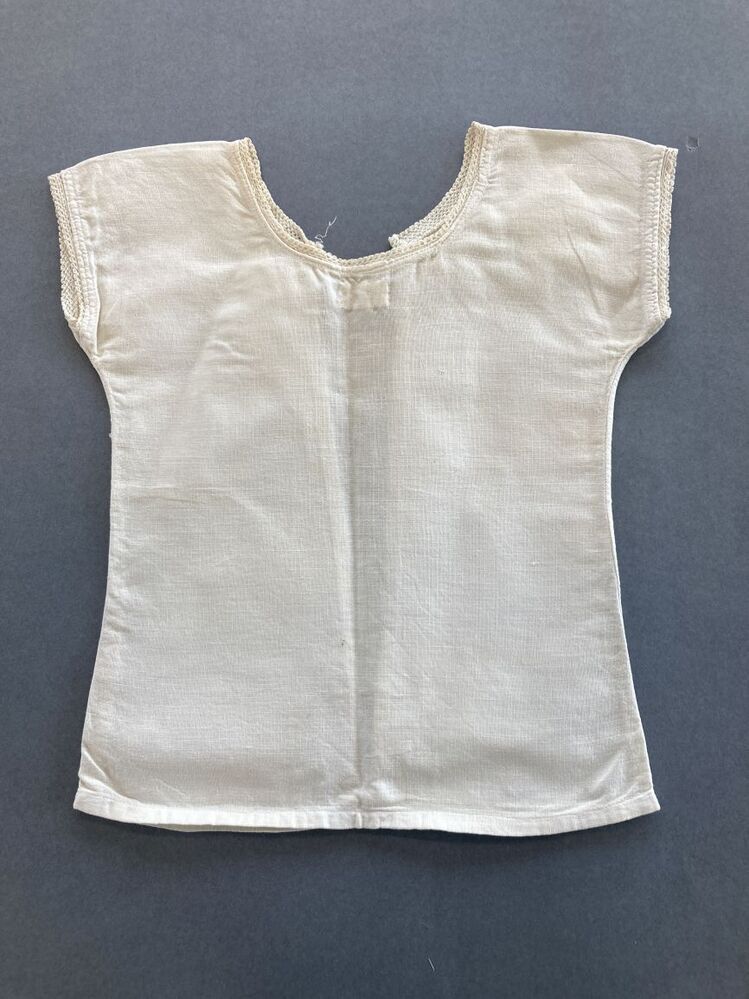 Fijn wit linnen meisjeshemdje met driekwart mouwen, ...