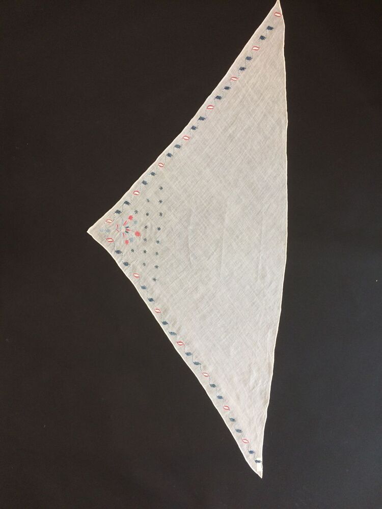 Linnen dek met in de hoeken een rood katoenen pompeb...